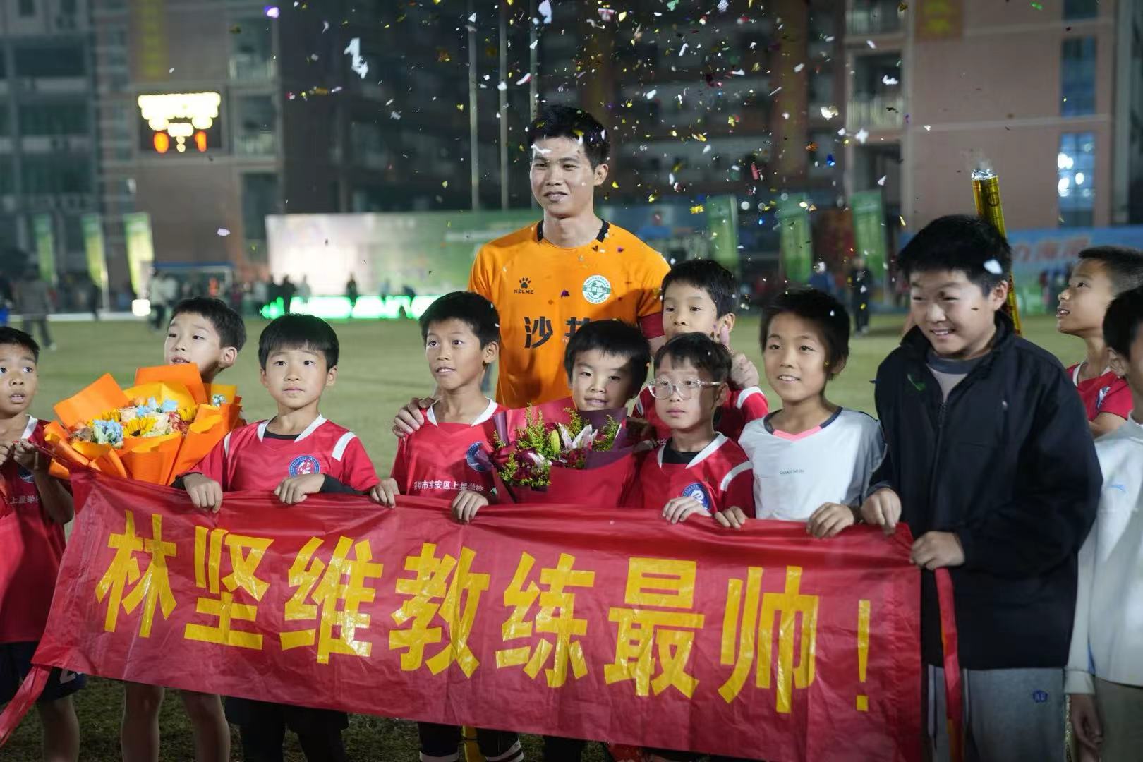 赛后,两个沉甸甸的个人奖项也随冠军奖杯一同留在了宝安:多次贡献神级扑点的新安“门神”张迅伟荣膺“最佳守门员”,而打入制胜金球的沙井队长林坚维则当选“最佳球员”。比赛结束后,一群孩子冲入场内,围着林坚维欢呼庆祝。原来,这位在场上霸气十足的队长,在场下是孩子们敬爱的足球教练,林坚维笑着说:“希望能带动他们积极参与足球,街超这样的赛事对深圳的足球文化和校园足球都能起到很好的促进作用。”