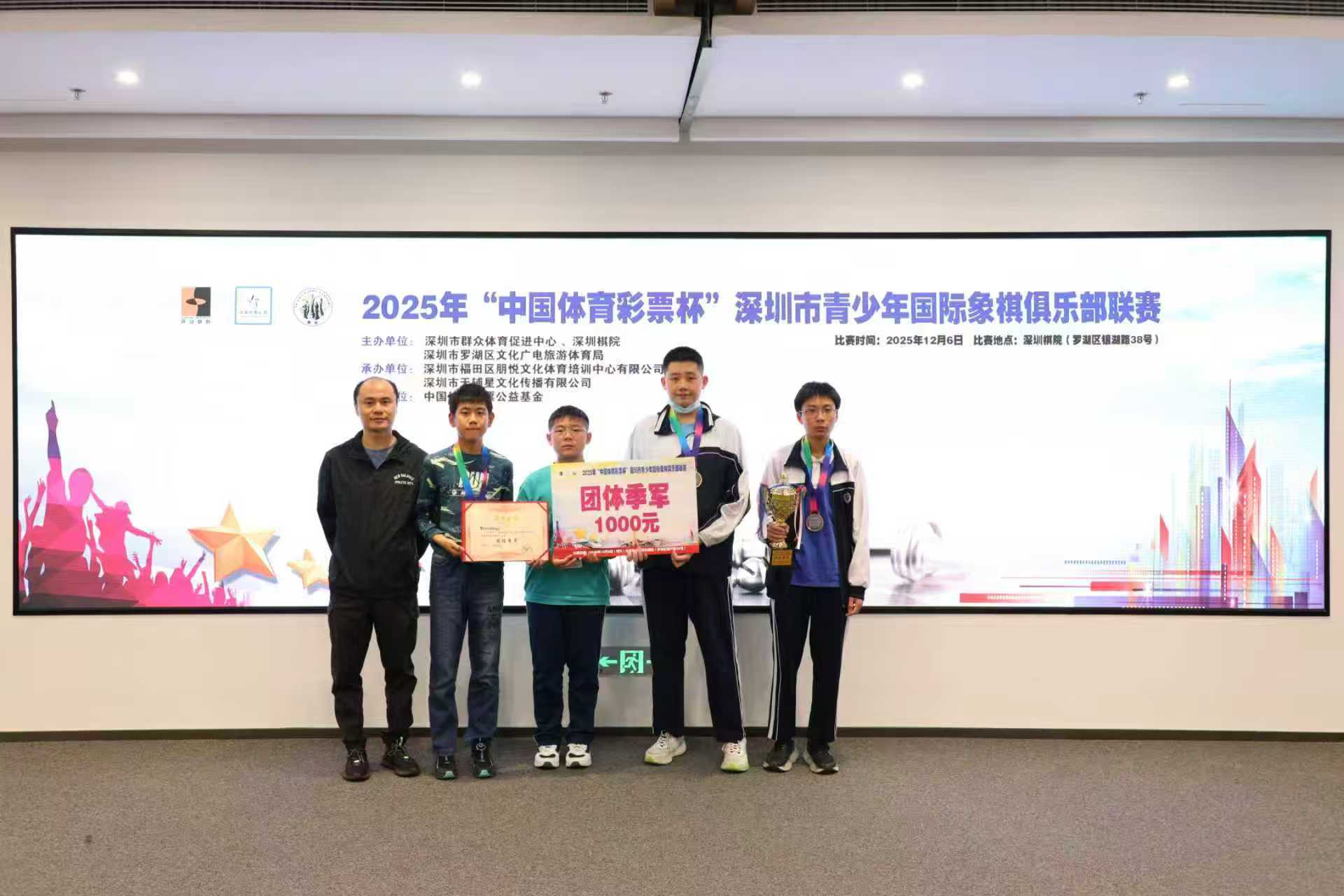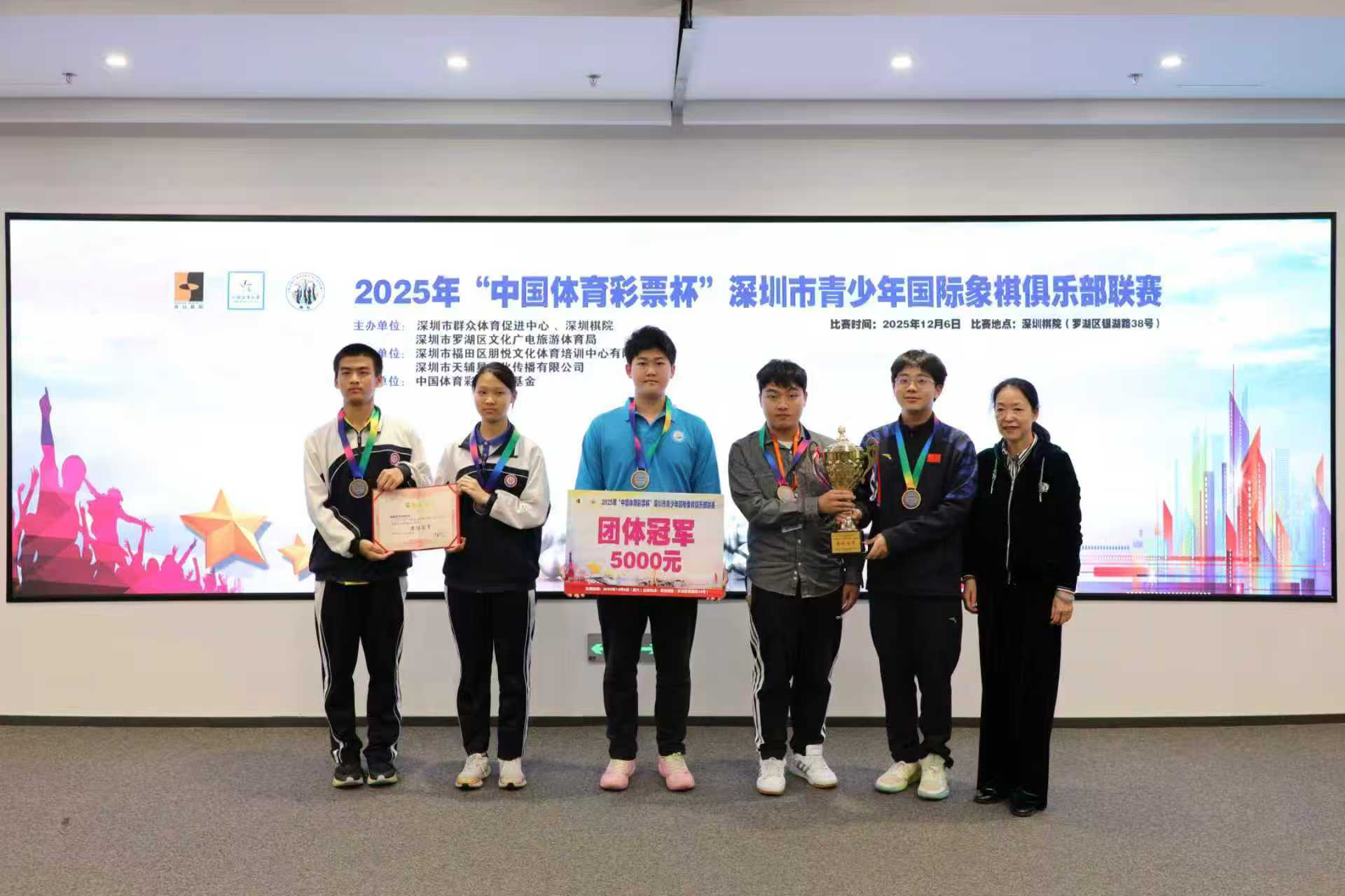 12月6日,“中国体育彩票杯”深圳市青少年国际象棋俱乐部联赛在深圳棋院(银湖部)精彩收官。本次联赛汇聚了全市20支高水平的俱乐部队伍,棋手们在六十四格棋盘间展开7轮智力角逐,最终8支团队脱颖而出斩获大奖。朋悦国际象棋俱乐部队凭借稳定发挥七战全胜摘得桂冠,棋育文化队、奥体国际象棋俱乐部队分获亚季军。第四至八名依次为智腾棋院俱乐部队、马斯特国际象棋俱乐部队、大白星光队、龙华雅智棋院队、心悦晨星队。