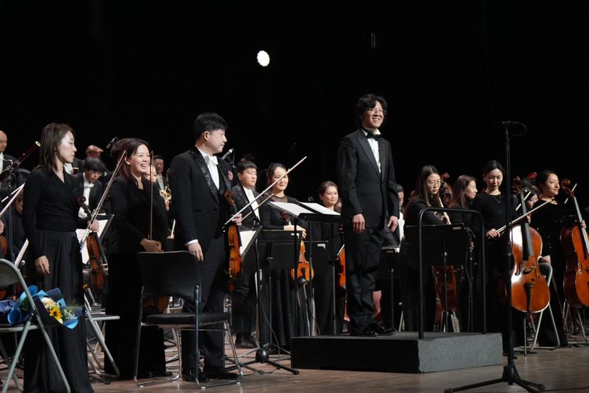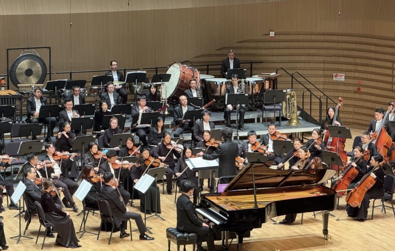 音乐会通过多元化的曲目编排,展现了中华优秀传统文化的博大精深。钢琴家沈璐倾情演绎的《黄河》钢琴协奏曲,成为全场焦点。从第一乐章《黄河船夫曲》的奔腾激荡,到第四乐章《保卫黄河》的铿锵有力,将中华民族不屈不挠的精神展现得淋漓尽致。女高音歌唱家刘志芸与小提琴家赵梦禅合作演绎的《花儿为什么这样红》,以天山脚下的炽烈深情打动人心,小提琴独奏如泣如诉,歌声婉转悠扬,深深打动观众。而当《我的中国心》旋律响起,全场观众情不自禁轻声跟唱。岭南名曲《彩云追月》以悠扬的旋律寄托团圆之愿,根据传统民乐《平湖秋月》《旱天雷》改编的交响乐则通过典雅与奔放的对比,展现岭南文化的独特魅力。压轴曲目《我的祖国》以管弦乐的恢宏气势,将音乐会推向高潮,现场响起经久不息的掌声。