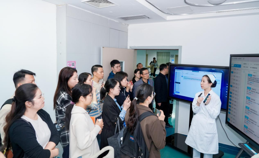 作为此次论坛的亮点之一,记者和与会代表们最后还打卡了12个智慧医疗站点,沉浸式体验了北大深圳医院数字化医疗新范式。