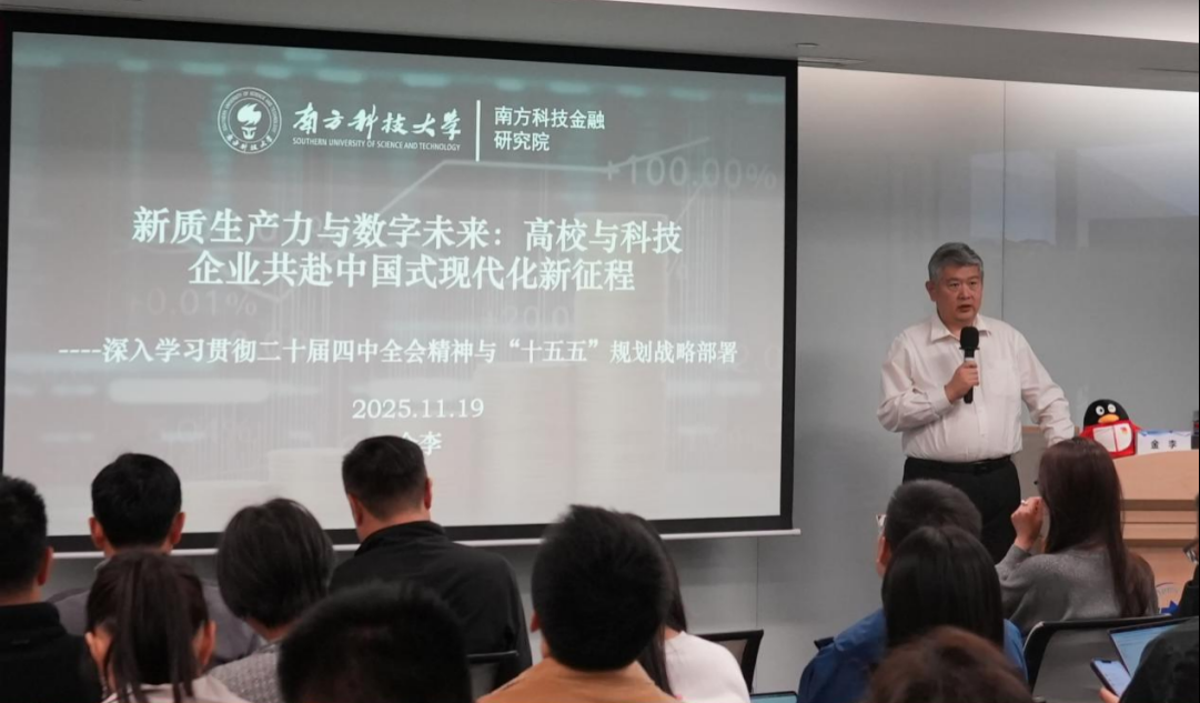 在腾讯公司,市委宣讲团成员、南方科技大学副校长、讲席教授金李以《新质生产力与数字未来:高校与科技企业共赴中国式现代化新征程》为题,深入解读党的二十届四中全会精神和“十五五”规划战略导向。聆听宣讲的党员们围绕科技驱动创新、新质生产力培育、AI 场景应用、人口结构变化应对等核心议题积极提问,金李逐一细致解答。结合广东、深圳的区域发展定位,以及腾讯与南方科技大学的产学研合作基础,金李鼓励大家将国家战略布局转化为岗位实践,在数字经济创新、新质生产力培育中主动担当作为。