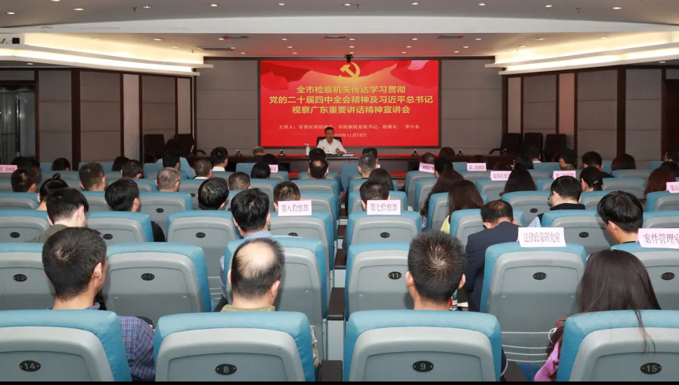 “要把学习贯彻全会精神同学习习近平总书记对政法工作、检察工作重要讲话重要指示精神结合起来,同学习习近平总书记对广东系列重要讲话重要指示精神结合起来,同学习《习近平谈治国理政》(第五卷)结合起来,一体学思践悟、一体推动落实。”市委宣讲团成员、市检察院党组书记、检察长李小东在全市检察机关传达学习贯彻党的二十届四中全会精神宣讲会上表示。