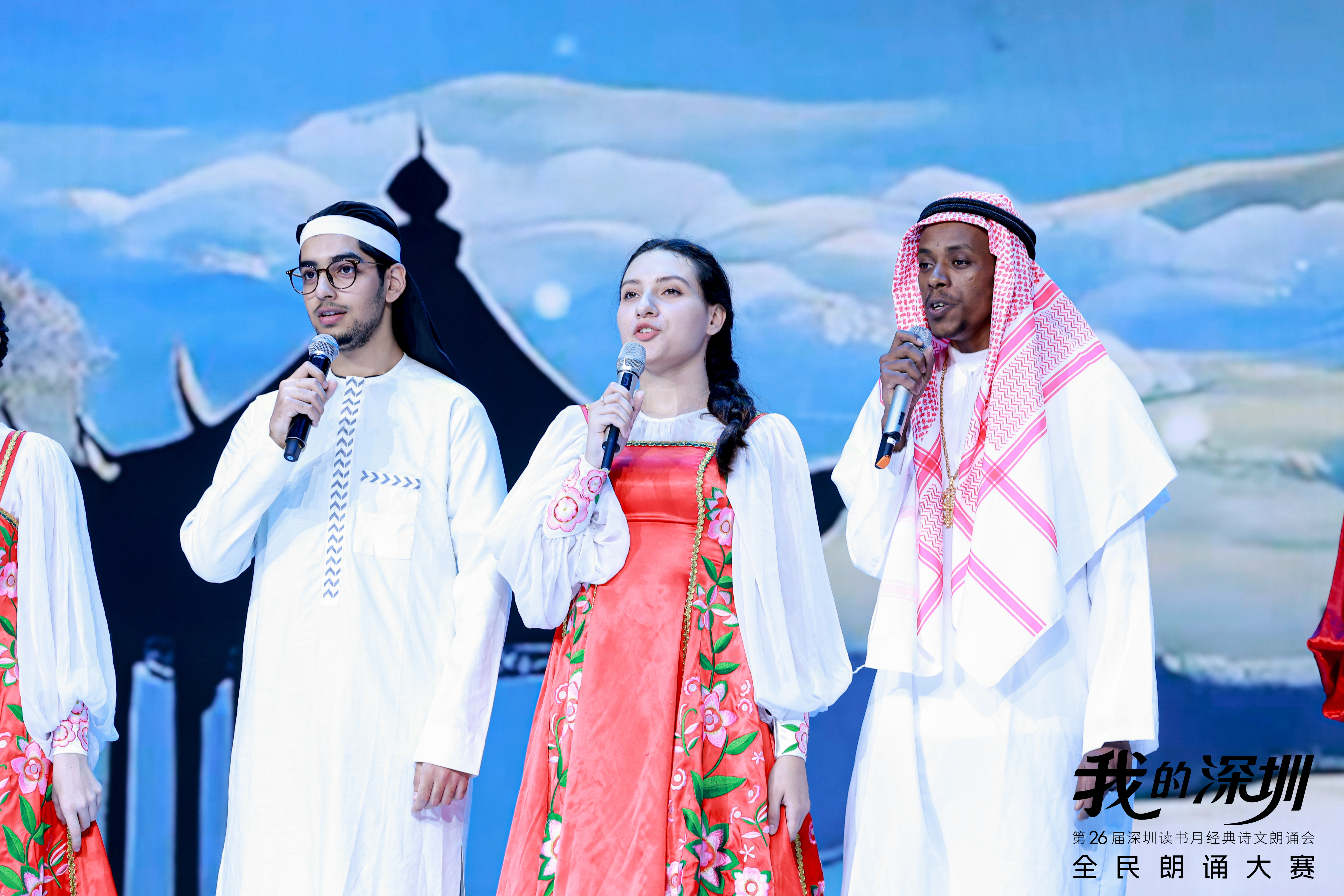 值得注意的是,参赛选手汇聚了包含多国留学生、香港少年、视障夫妇、退伍老兵等在内的不同人群,以诵读为纽带,传递真挚情感。多国学子跨越国界朗诵经典名篇《水调歌头·明月几时有》,用不同的腔调让诗韵焕发跨国活力;深港少年携手发声,一首《大写的中国》凝聚两地文化共情;视障夫妇相互扶持,以《致橡树》的真挚语调表达坚韧守望力量;退伍老兵铿锵吟诵,用《谁是最可爱的人》回望岁月尽显担当赤诚。各群体以声传情,满溢热爱与温度,充分彰显阅读魅力与深厚文化底蕴。