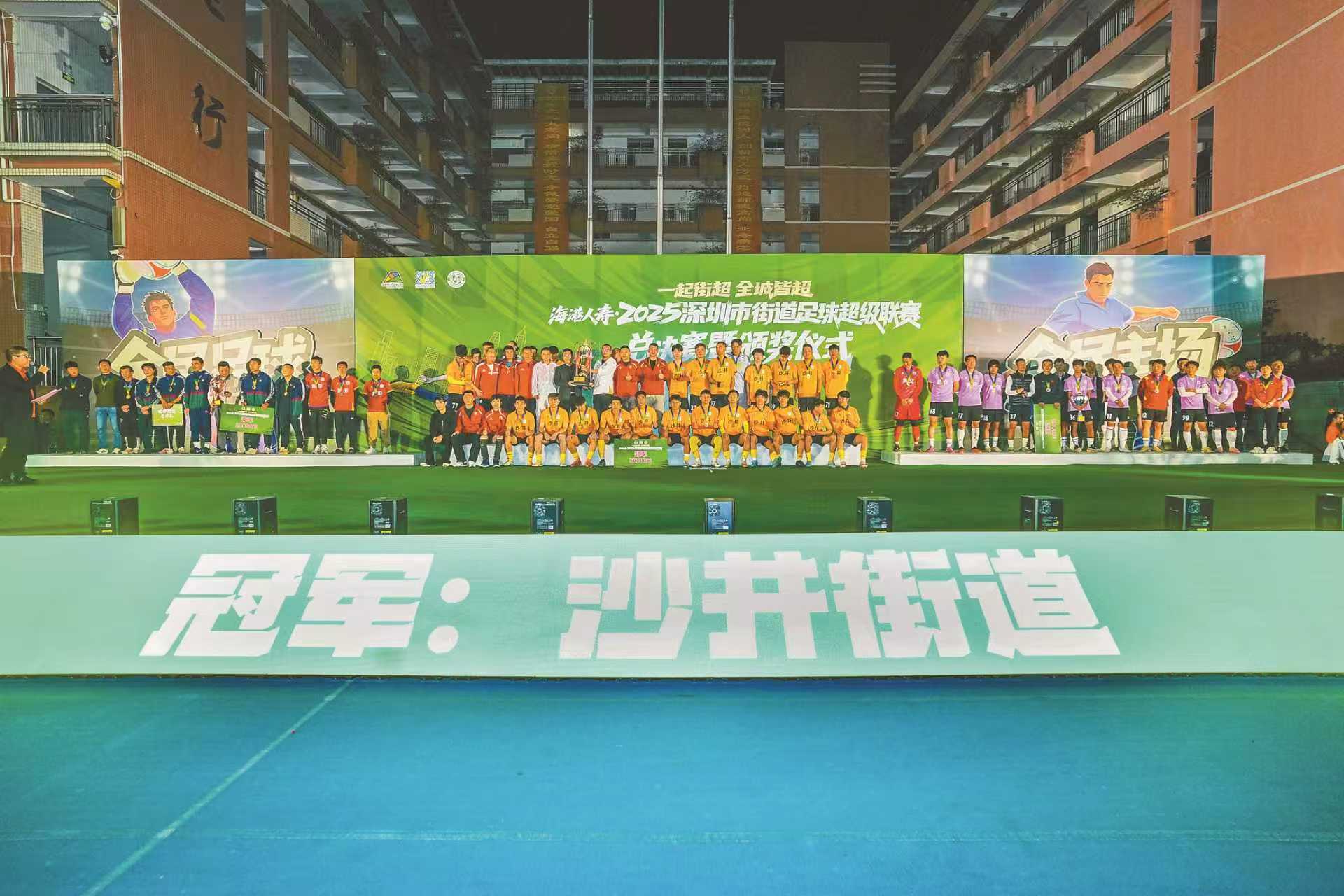 12月6日,宝安壆岗足球俱乐部足球场人声鼎沸。海港人寿·2025深圳市街道足球超级联赛(简称“深圳街超”)决赛进行至最后时刻,沙井街道队长林坚维攻入绝杀球,让现场变成庆祝的海洋。1比0,沙井街道战胜了“超级黑马”新安街道,夺得本届赛事冠军。