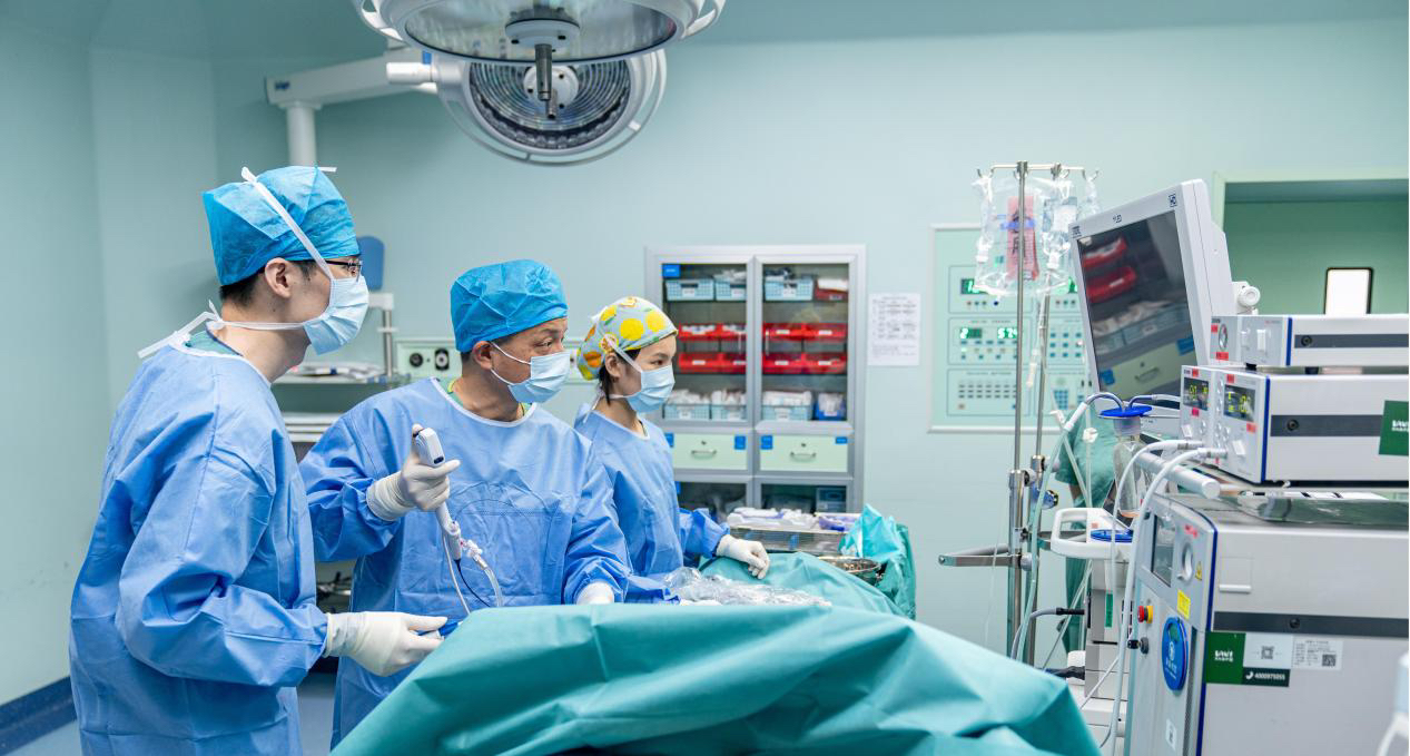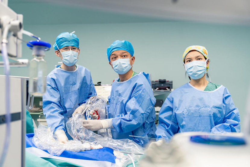 面对这个复杂的结石“迷宫”,许清泉教授带领团队决定为他量身定制一场“双镜合璧”的碎石手术——经皮肾镜联合肾盂软镜同期碎石手术。术中,许清泉教授主刀,先在李明腰部开一个手指粗细的微创通道,将经皮肾镜伸入肾脏清理大块结石,配合肾盂软镜可弯曲的“身段”,钻入各个隐蔽肾盏,利用“碎石航母”配备的气压弹道、超声负压和激光把隐藏在深处的结石逐一击碎、取出。