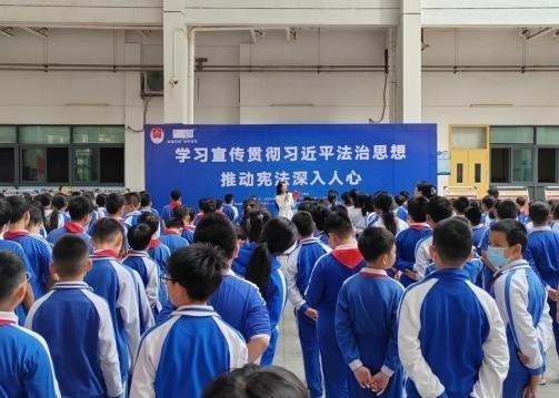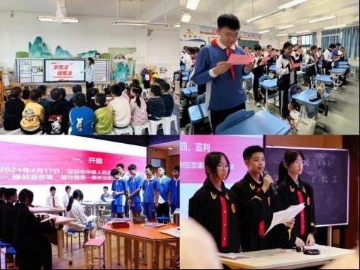 校园普法热潮在各街道持续蔓延。宝龙街道建文外国语学校通过“大转盘”“大富翁”等趣味游戏开展普法,游戏区前人头攒动,普法讲师结合校园日常生活场景开展情景问答、以案释法,学生们在闯关答题中掌握宪法知识。深圳科学高中龙岗五和学校以校园反欺凌为主题编排模拟短剧,让学生在角色扮演中领悟法治边界。深圳大学附属坂田学校、布吉中学、怡翠实验学校、木棉湾学校等校开展“宪法晨读”活动,朗朗诵读声中,宪法的庄严与神圣深深烙印在青少年心中。从幼儿园的趣味普法到中学的情景教学,龙岗区精准对接不同学段需求,用沉浸式体验为青少年播下法治种子。