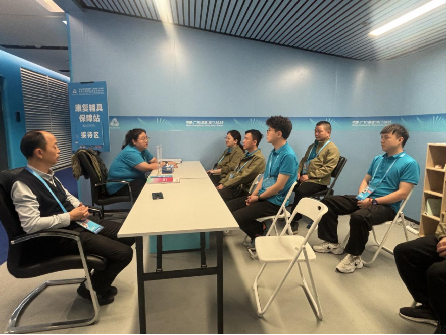 创新服务模式是本次辅具保障的一大亮点。福田赛区在全市率先采用“线上+线下”联动保障机制,线上依托“粤辅通”小程序提供24小时服务,运动员可随时预约维修、借用辅具等服务,小程序内还配备真人在线手语翻译,能即时满足听障、聋哑运动员的沟通需求。线下团队则在赛事时段全程值守,同时从深圳市残疾人孵化空间借用沟通辅助器具,进一步完善无障碍交流支持。“全国有众多志愿者随时响应,只要提出需求,就能现场实现面对面手语沟通。”这种双轨模式让保障既全覆盖又无死角。