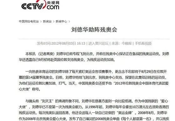 刘德华长期以来心系公益。早在2008年北京残奥会时,作为北京残奥会形象大使的刘德华就创作并演唱了《Everyone is No.1》,用音乐传递残障运动员的自信与力量。在歌曲的MV中,他扮演了一位身残志坚的运动员。为了把“断腿”的角色演好,他在拍摄过程中,每天都要把左小腿用绷带缠起来、吊着,长达7个小时。