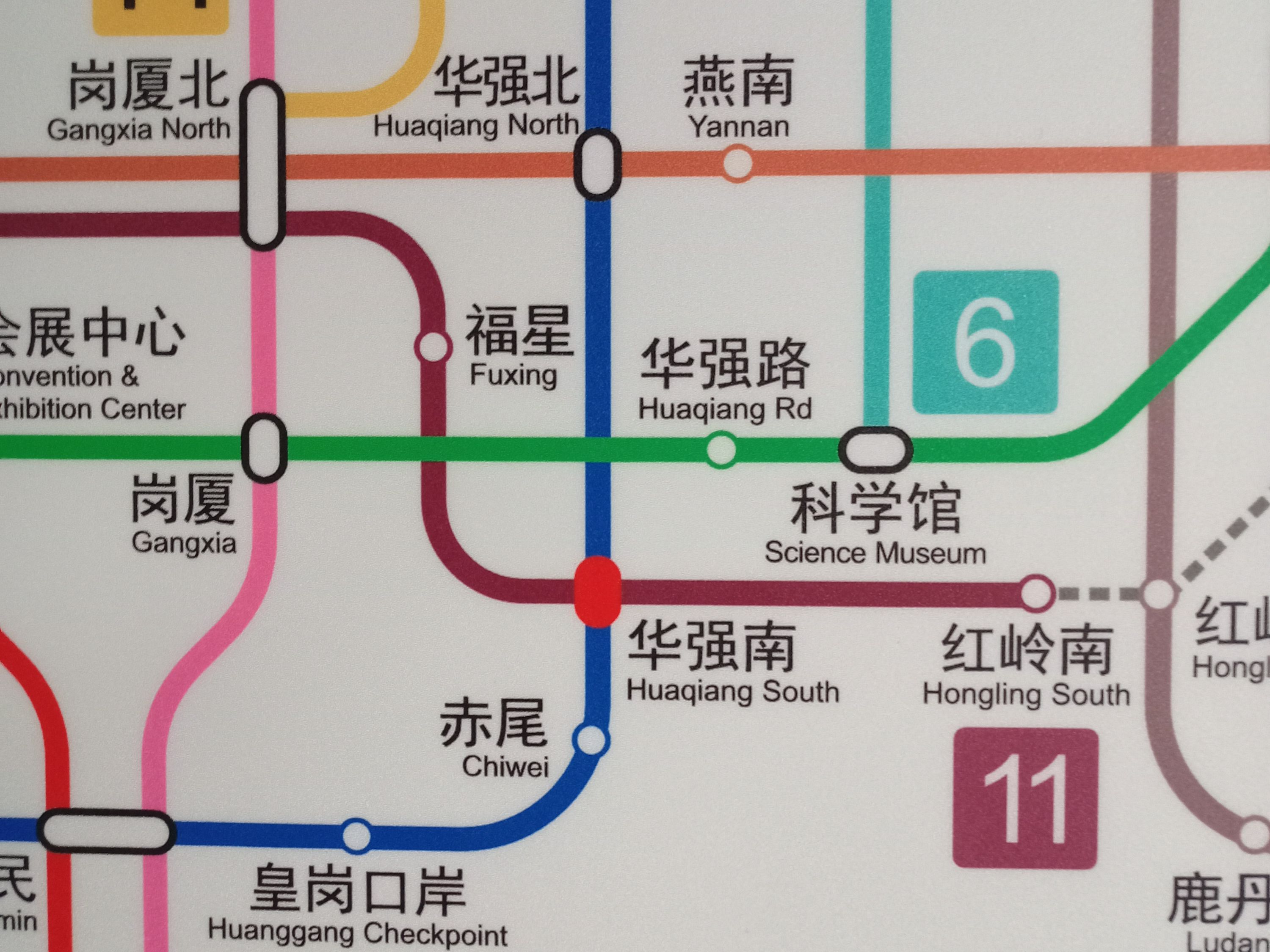11号线二期则从岗厦北站延伸至红岭南站,本次开通区段为华强南站至红岭南站,全长2.3公里。