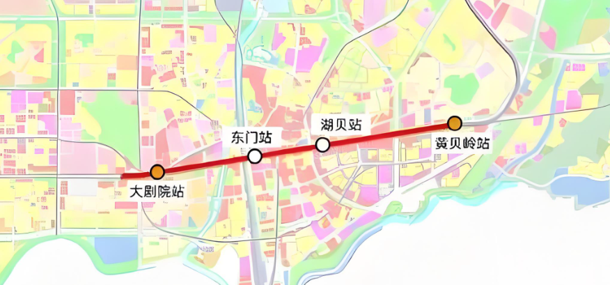 5号线西延段线路全长2.88公里,起自既有黄贝岭站,新设湖贝站、东门站、大剧院站3座车站,串联罗湖最繁华的核心片区,让5号线客流首次可以直达罗湖中心区,也大幅缓解黄贝岭站2、5号线换乘压力。其中,大剧院站可与1号线、2号线实现便捷换乘,为市民带来更顺畅的出行体验。