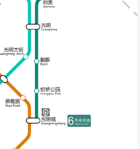 深圳地铁6号线支线二期起自既有光明站,终至光明城站,线路全长约4.95公里,设车站3座。线路开通后,实现了光明区高铁与地铁的高效换乘,乘客往返光明科学城与福田中心区的通勤时间将大幅缩短,让跨区上班族早上多睡一刻钟、晚上提前半小时到家。