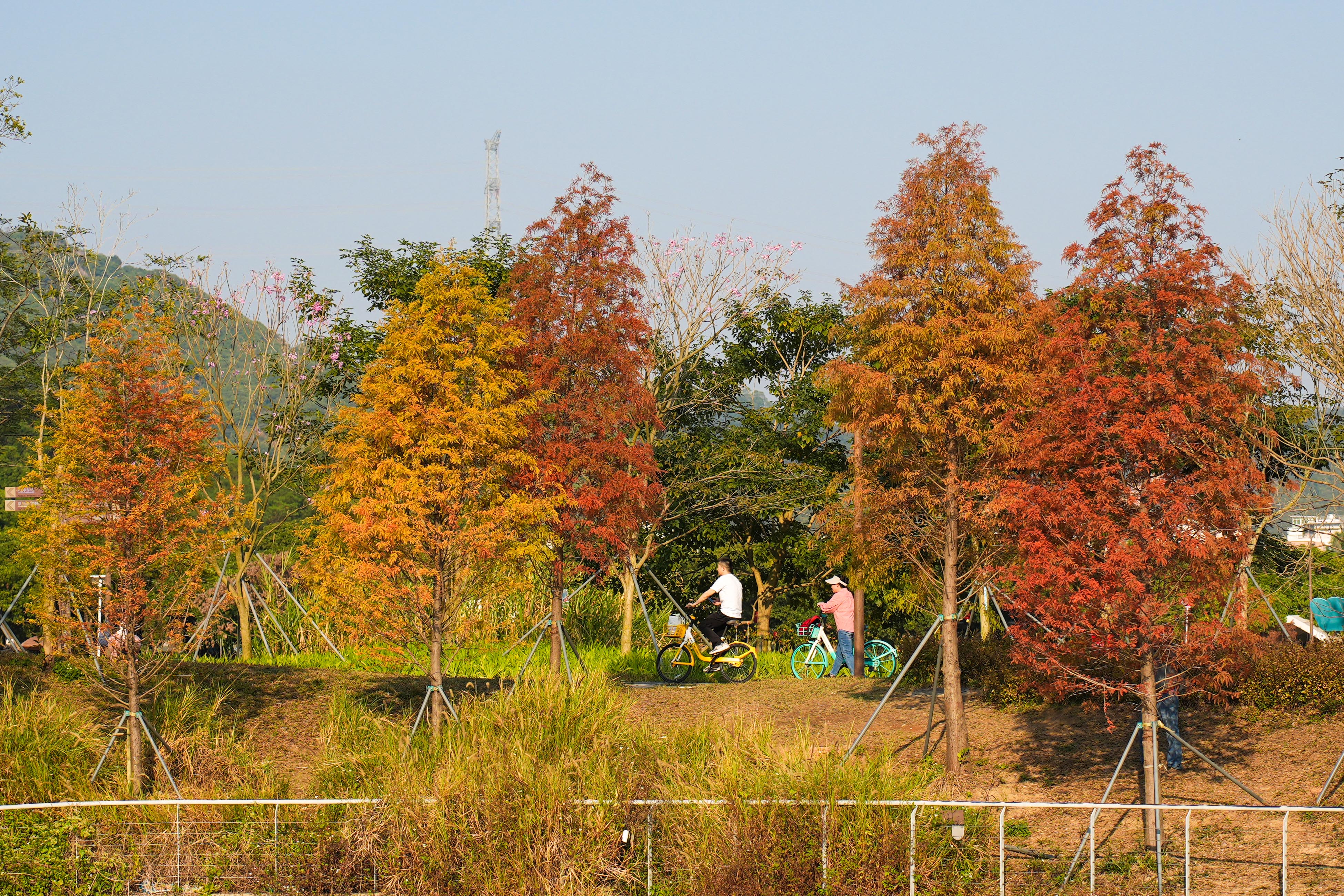 “我特地从香港过来骑行,没想到深圳的秋景这么惊艳!”一位身着专业骑行装备的市民在绿道旁笑着说道。他坦言,自己是听说深圳新建的绿道开放后专程前来,原本计划骑完全程就返程,却被沿途渐染的落羽杉吸引。骑行途中,他忍不住频频停车,用镜头定格这份独有的鹏城秋韵。