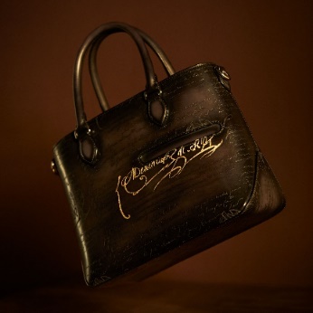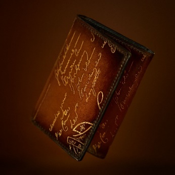 Scritto 图纹是镌刻于 Venezia 皮革之上的匠心饰纹,灵感源自18世纪的一份古老公证文书。文书上优雅的法语花体手写字迹,激发了品牌传奇人物 Olga Berluti 的灵感,她将这些精美的文字与符号巧妙转化为别致的皮革饰纹。