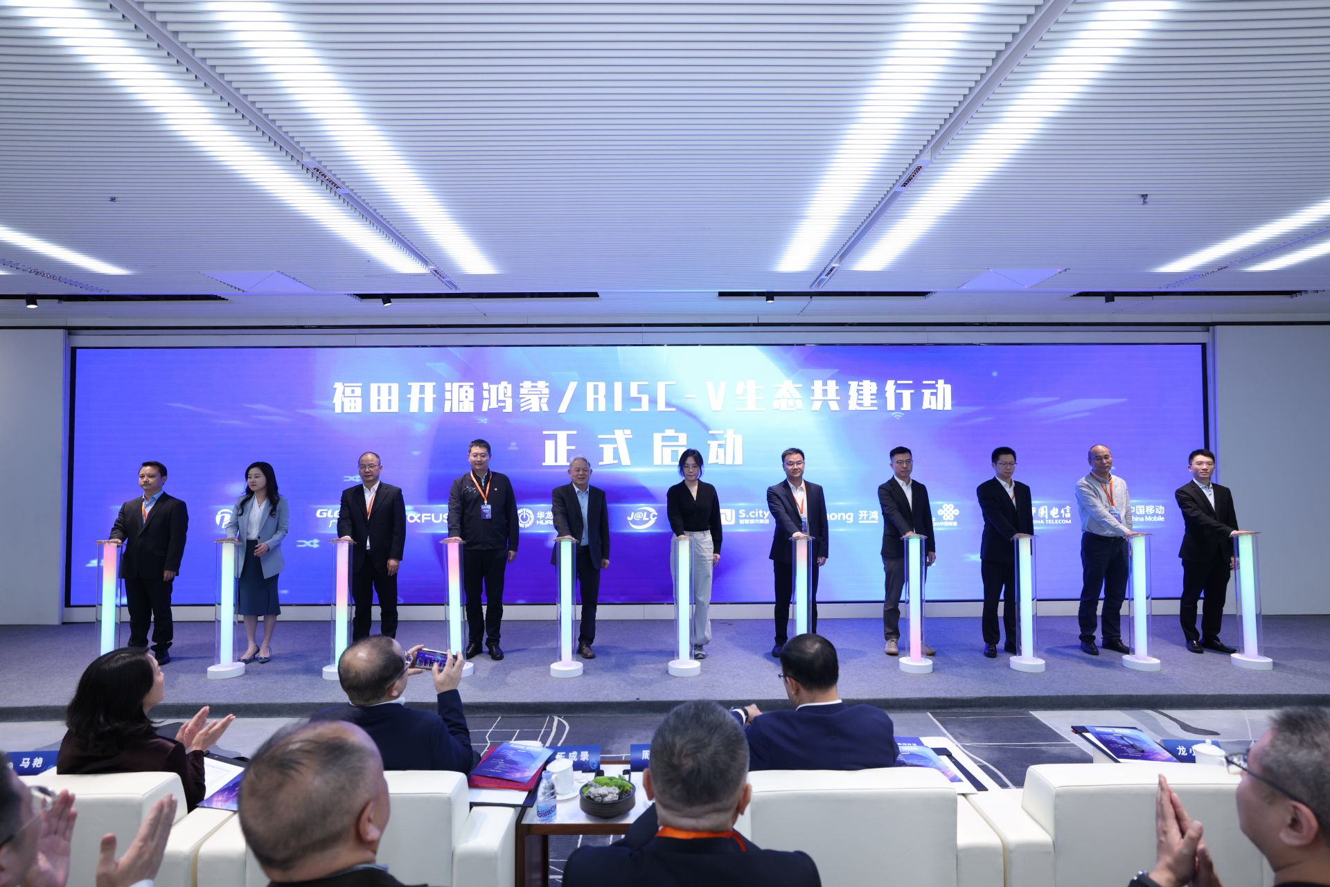 在顶层设计与智力支撑之下,生态力量加速集结。中国移动、中国电信、中国联通福田分公司,以及深开鸿、深智城、嘉立创、华龙讯达、超聚变、广联达、深鹏达电网等11家产业链代表企业共同按下启动键,宣告“福田开源鸿蒙/RISC-V生态共建行动”正式启动,将在芯片适配、应用开发、场景推广等领域深化协作,促进上下游企业高效联动,共同打造开放、共生、共赢的数字产业生态。