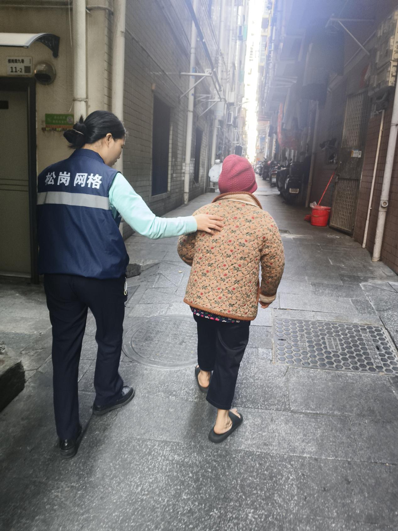 12月9日上午,宝安区松岗街道楼岗网格综合管理站网格员杨佳雅在辖区巡查时,发现一位约80岁的老人神色慌张、独自徘徊,疑似迷路。杨佳雅主动上前询问,但由于语言交流不畅,老人无法清晰说出住址和家属信息,情绪逐渐焦虑。