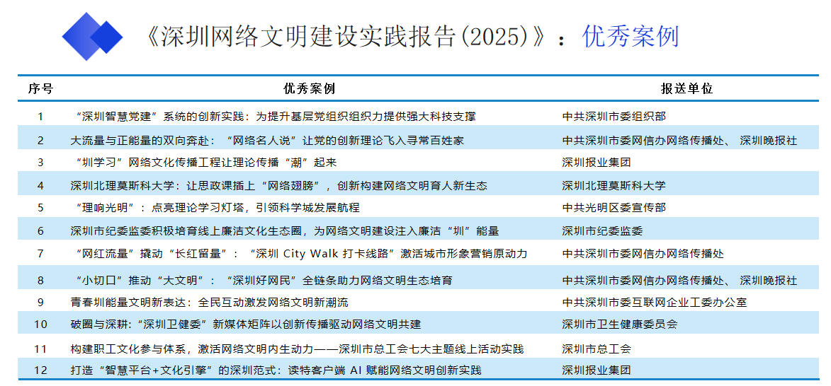 立足深圳“点-线-面”的实践演进逻辑,2025网络文明蓝皮书实现了从“网民素养聚焦”到“企业主体赋能”再到“生态系统构建”的研究跃升,不仅对深圳网络文明建设进行了全面总结,也为全国网络文明发展贡献了“深圳方案”,在推动数字文明与文明新形态的构建方面具有重要的启示意义。