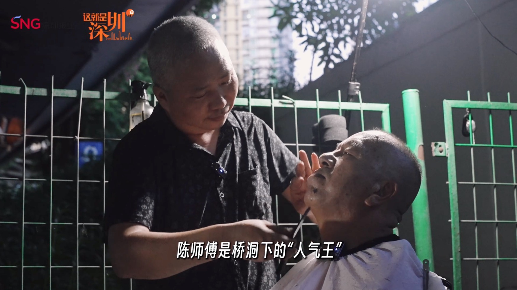 桥洞上方汽车驶过的轰隆声,盖不过剪刀的咔嚓声与熟人间的寒暄。10元钱剪的不只是头发,更是跨越年龄的信任、邻里间的温情,是异乡人在深圳找到的归属感。