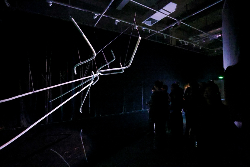 展览空间设计由INCLS创始人卜冰担纲,他表示:“这是一个暗黑山水中的行旅,以园林空间建构的方式,将情绪的起伏暗藏在行走的节奏之中,并时刻重置观者与艺术作品之间的紧张关系”。