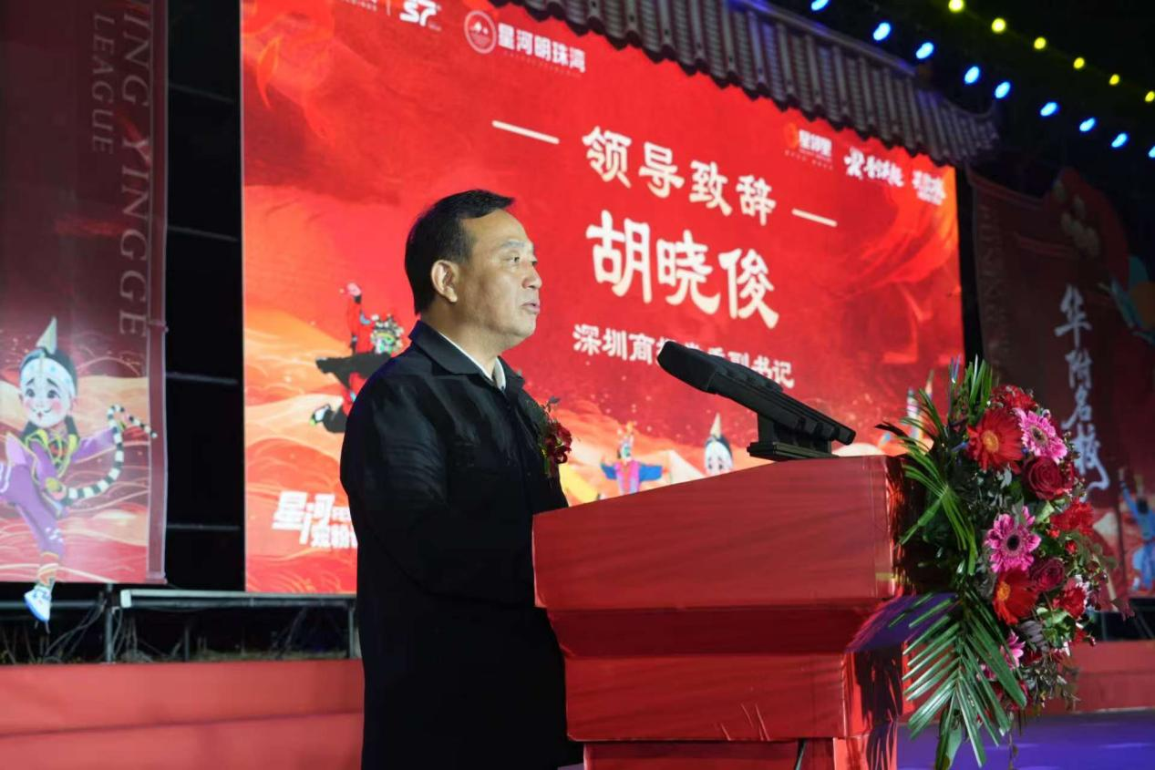 随后,深圳商报党委副书记胡晓俊登台致辞,他向赛事的成功举办致以热烈祝贺,盛赞英歌舞为“力与美交融的岭南文化瑰宝”。他表示,“支持‘普宁英超’,就是支持一种自信、自强的文化表达。我们期待,各方能持续携手,共同守护并传扬这份深植于民族血脉的文化基因。”