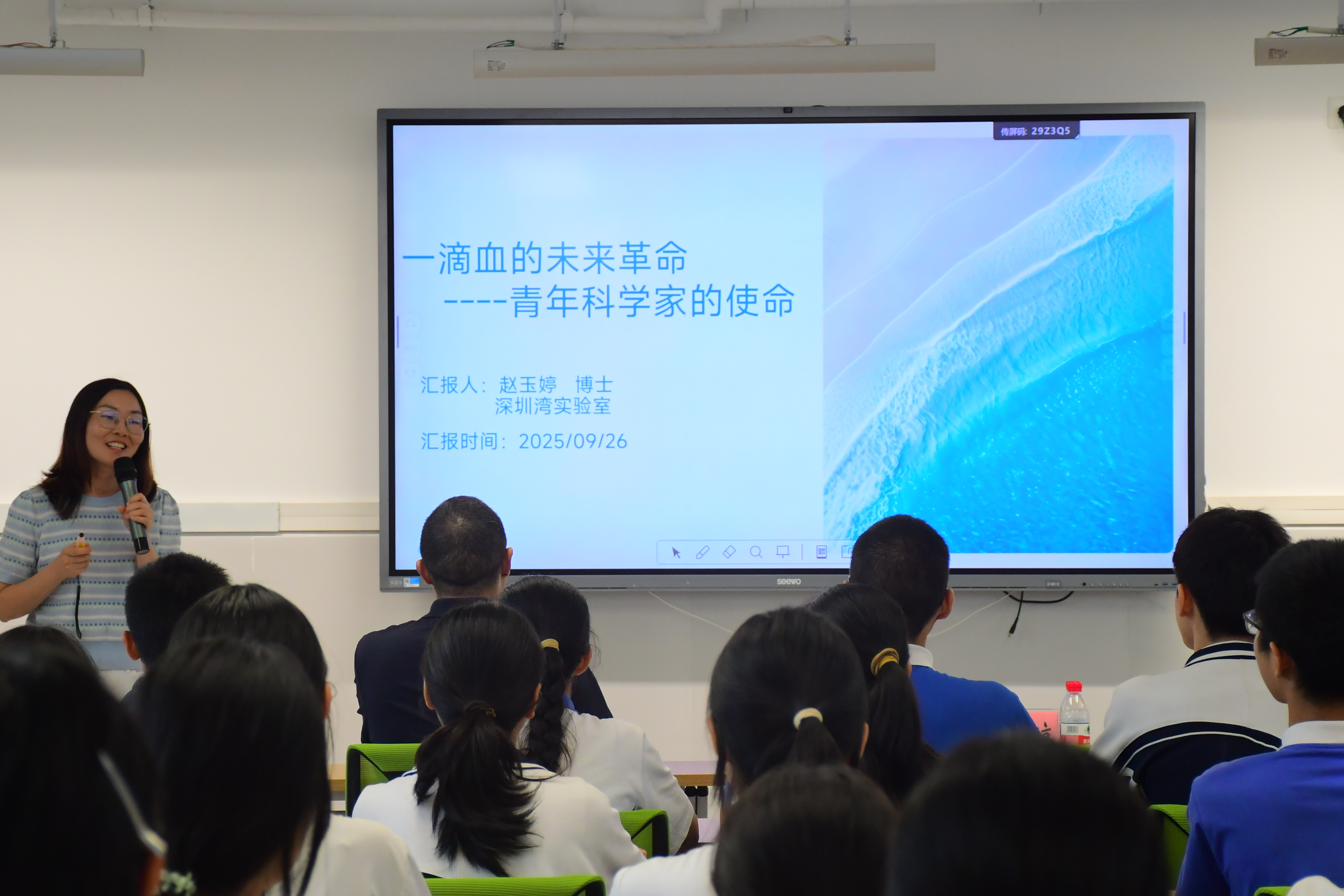 大国重器里的科学增智课。“一滴血,能带来怎样的未来革命?”玉塘社区科技思政副校长、深圳湾实验室赵玉婷博士在长育学校的讲台上发问。“通过液体活检技术,一滴血就能筛查早期癌症——这就是中国生命科学正在创造的奇迹。”话音未落,便引发低声惊叹。最后,赵博士发出邀请,“未来,你想加入吗?”,课堂瞬间沸腾,一只只举起的手,托起未来科技的火种。