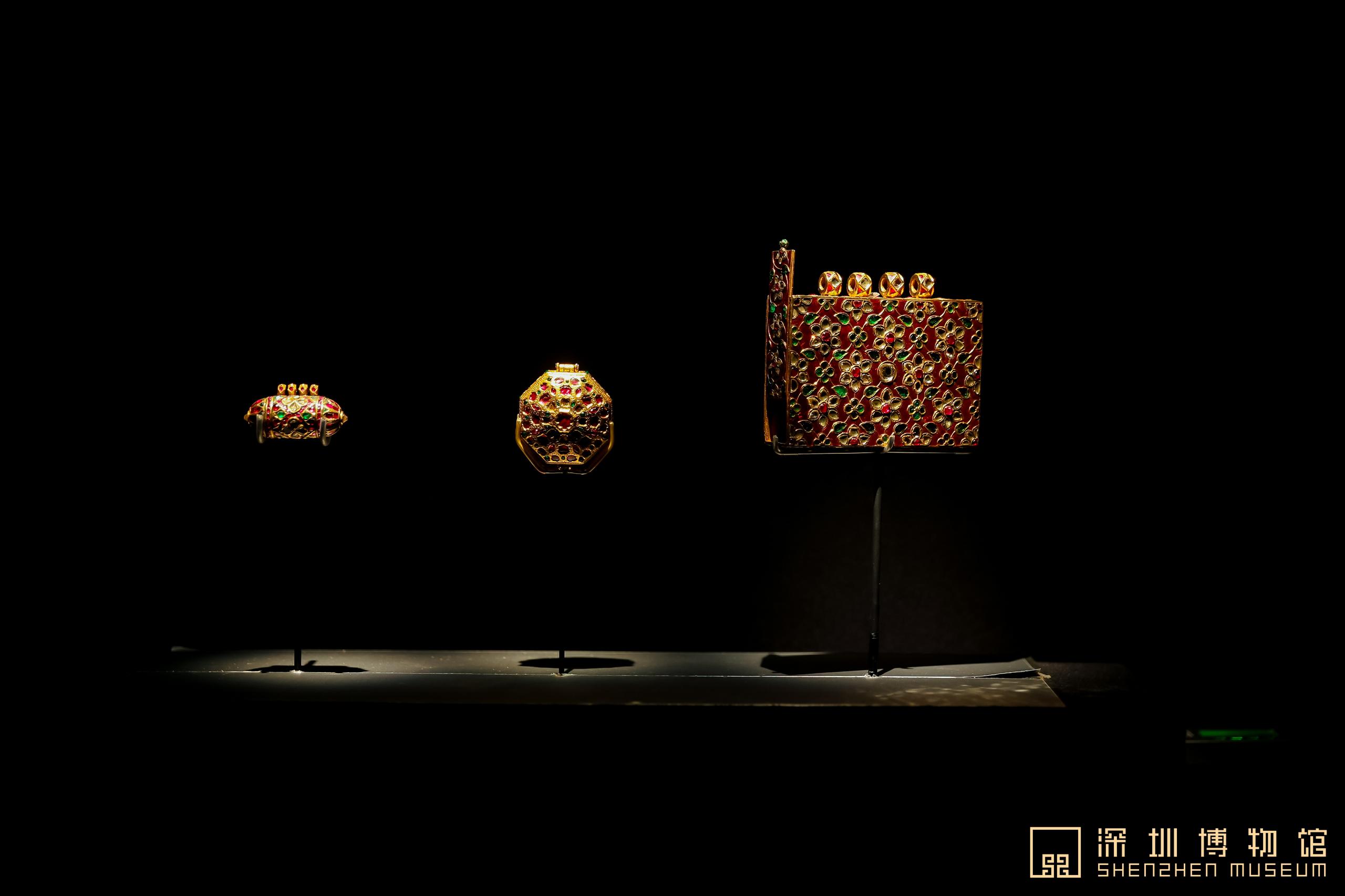 此次展览策展在专业性、清晰度与展示节奏上达到了深博近年来的新高点。展览以“权力—艺术—工艺”为叙事轴线,将遥远的南亚宫廷体系拆解为现代观众可理解的视觉逻辑。多边形几何切割的艺术展区呼应莫卧儿对称美学,红绿对比色营造叙事空间,低反射玻璃与珠宝灯光创造“视觉真空”,将博物馆级展示与宝石级呈现完美融合。光影装置并非单纯沉浸,而是在对莫卧儿纹样、色彩、空间节奏深入研究基础上转化为现代科技语言,让文明美学重生于当代视野。科技手段辅助文明理解、设计语言激活传统审美、衍生文创推动文明走入生活,这一系列尝试使展览与深圳当代城市气质深度结合,让对古文明与当代性的深度嫁接。
