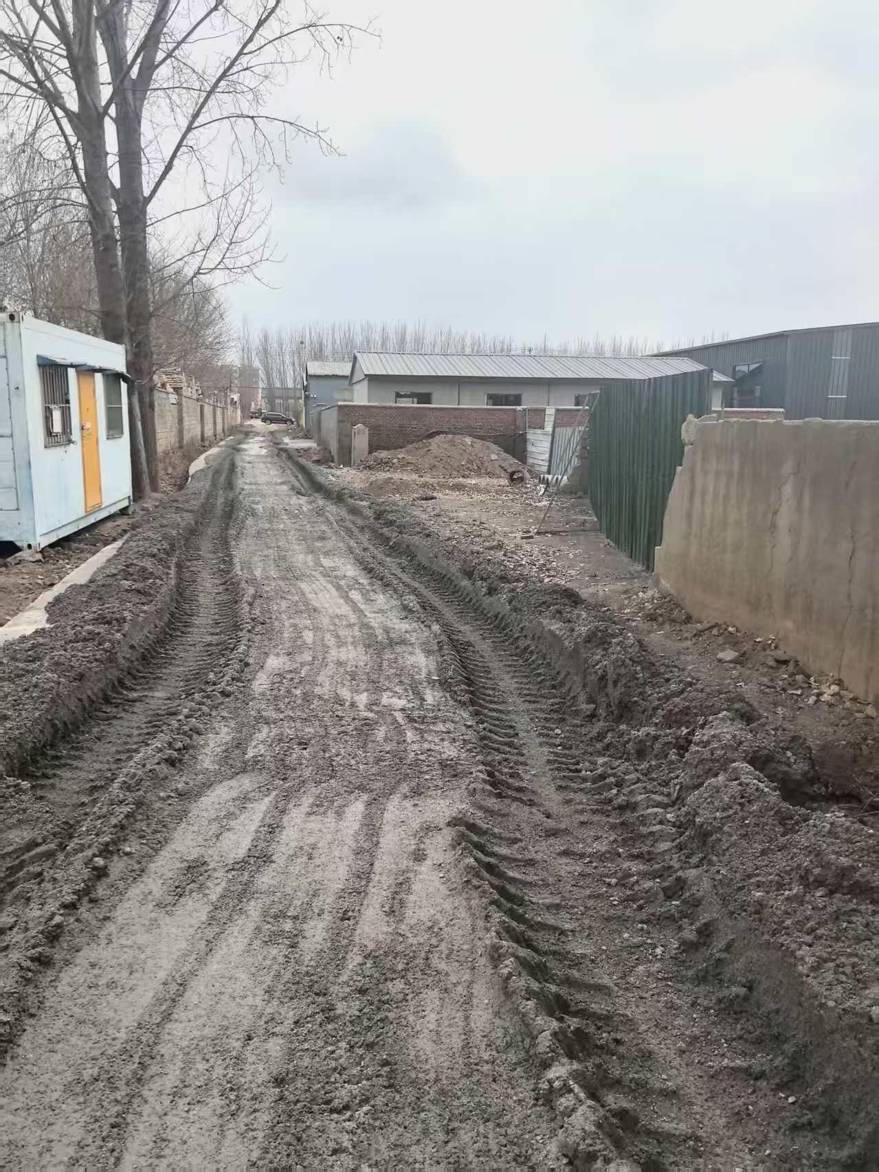 相关视频显示,在两座厂房之间,有一条尚未凝固的混凝土道路。视频中,一辆黄色铲车碾过路面期间,有村民试图进行阻拦,但未果。记者注意到,铲车开过后,这条新修的道路已完全被破坏,到处是坑坑洼洼。