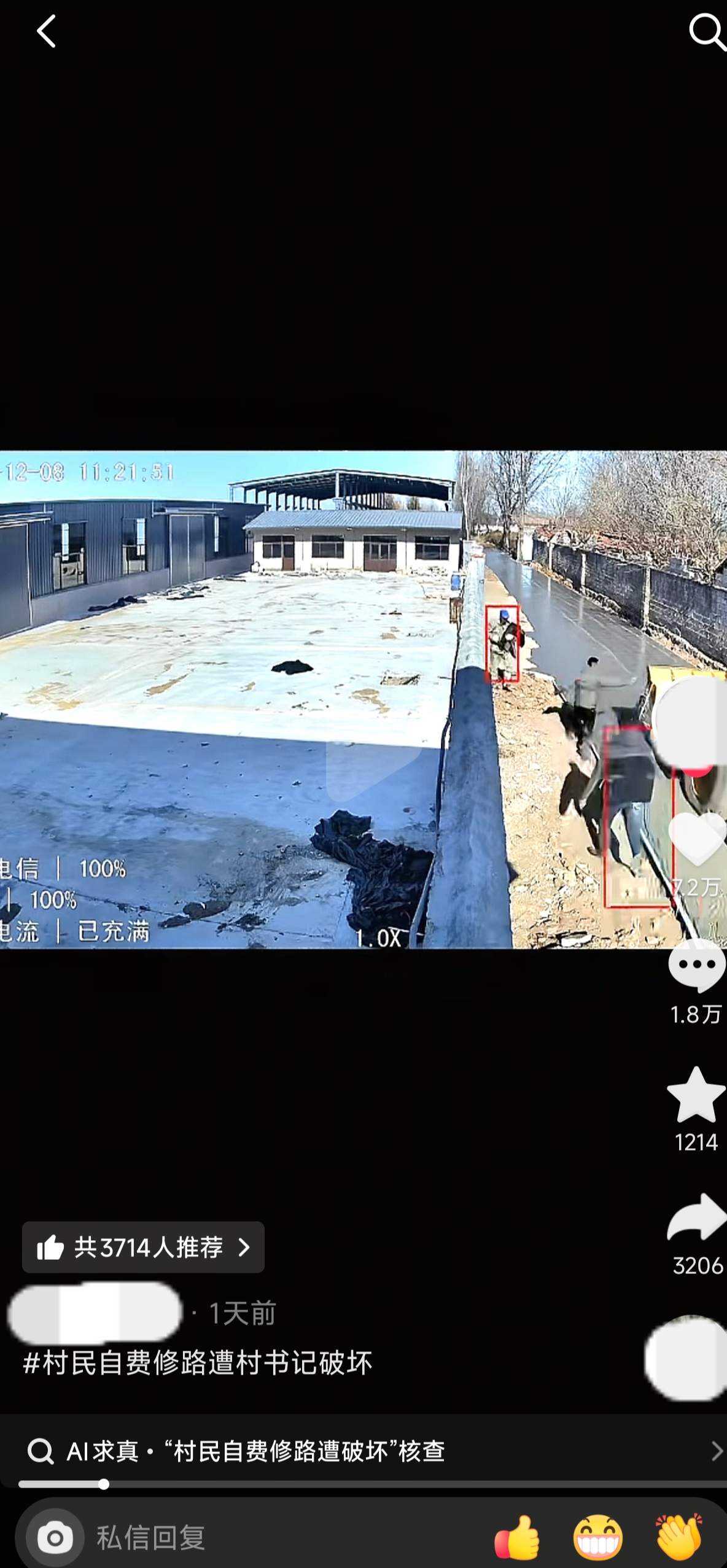 发帖人表示,事发地点位于山东省诸城市范家岭村,视频中的道路是村民自筹资金进行修缮的,开铲车破坏道路的人是该村村支书。视频发布后迅速引发网络关注。截至发稿前,相关视频点赞已有7.2万,评论1.8万,其中有不少评论质疑破坏路的做法。记者尝试联系发帖人了解更多情况,但未获回复。