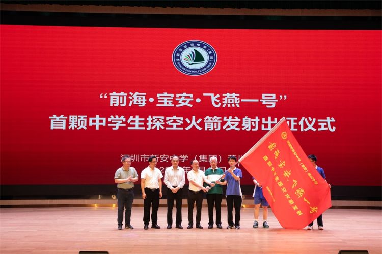 5月13日,被命名为“前海·宝安·飞燕1号”的全国首颗中学生探空火箭出征仪式,在新安中学(集团)燕川中学举行,并定于月底在青海冷湖发射。中国工程院院士龙乐豪等航天专家为发射团队授出征旗。
