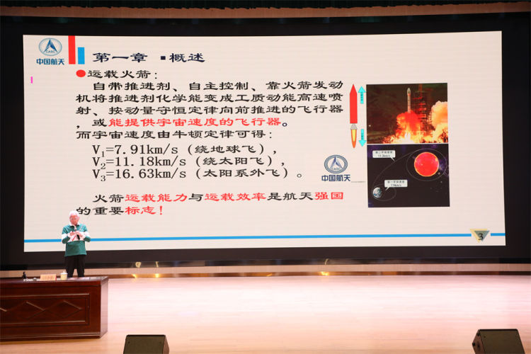 随后,龙乐豪以《中国火箭与航天》为主题,带领同学们系统了解火箭技术,并回顾长征火箭系列的辉煌发展史。从“太空育种”到“北斗导航”,从“嫦娥探月”到“天宫空间站”,院士以一个个航天重大工程为例,展现了中国航天的卓越成就。