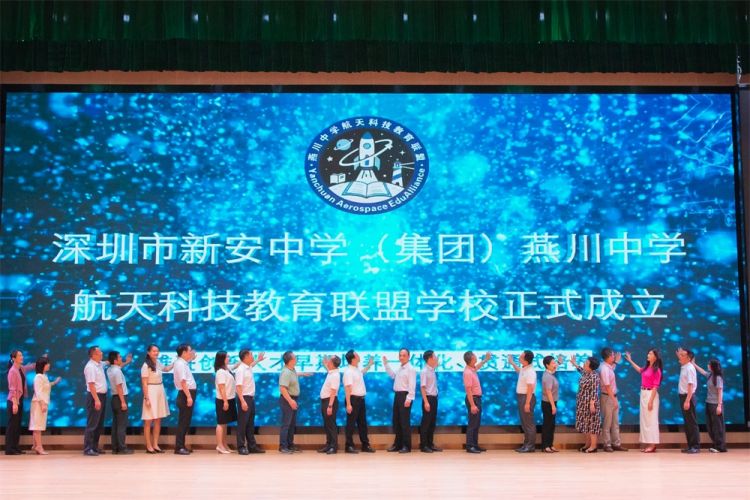 当日,由深圳市新安中学(集团)燕川中学发起,联合宝安区内18所中小学组成的燕川中学航天特色教育联盟,也正式宣告成立。作为一个自愿组成的非营利性教育合作组织,旨在落实习近平总书记在教育 “双减” 中做好科学教育加法的指示精神。期望通过联盟实现资源整合、课程共享与人才共育三大突破,汇聚多方优质教育资源,开发适合各学段的航天科技 +学科融合课程,建立一体化、贯通式培养机制。