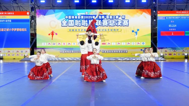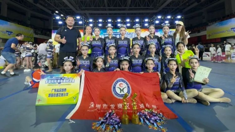 在江西举行的2025年全国啦啦操联赛总决赛上,龙岗区坂田街道花城小学梦想啦啦操队同样交出亮眼答卷,一举斩获儿童甲组花球规定0级第一名、花球规定1级第二名、集体自由舞蹈第二名、花球规定动作初级A第三名,队员刘熙玥获评“全国啦啦操四好运动员”,陈怡安摘得“个人体育道德风尚奖”。