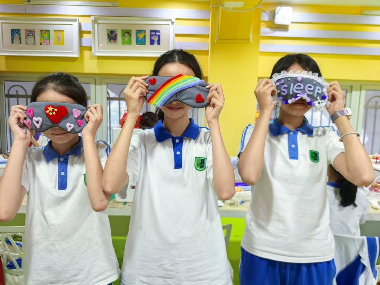 学生用咖啡渣制作吸附包、果皮熬制天然香薰、香囊搭配中草药,解决 “鞋子异味”“空气不清新”等问题;为了解决“蚂蚁干扰”问题,学生自主设计实验、测试不同天然试剂效果写出了完整的《驱蚁实验报告》;针对“教室光线亮难入睡”的问题,有同学提议用遮光眼罩,也有同学担心“眼罩容易混淆”,大家便决定自主设计:有的融入彩虹元素做标记,有的写上“sleep”英文增加辨识度,让每只眼罩既独特又实用,成了专属的“治愈系” 学习用品;在老师带领下,学生还到龙城公园录制鸟鸣、溪流声,结合“中医五音疗法”,与音乐老师共创《山居秋暝》《空谷幽鸣》等 AI 睡眠曲;同学们制定《午睡公约》,明确“睡前 5 分钟准备”“每周床品清洗”“安全通道检查”等规则,在收纳整理中体会劳动价值……