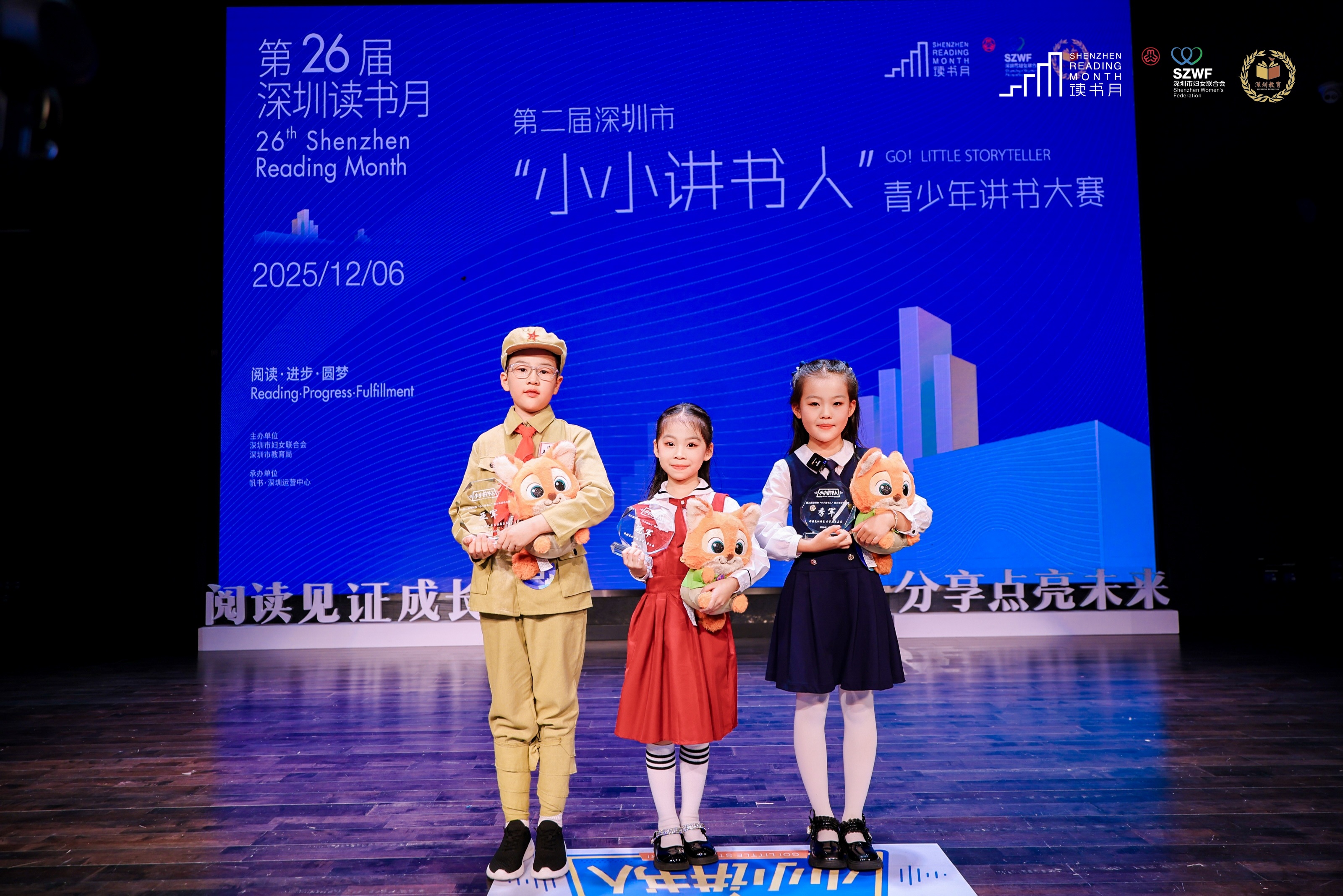 经过激烈角逐与公正评审,大赛奖项逐一揭晓。7岁的欧若琳,也是全场年龄最小的选手凭借《火鞋与风鞋》中真挚动人的讲述,荣获冠军;刘骏颐、张梓萌分获季军与亚军。此外,“最具潜力奖”“十佳青少年讲书人”“优秀指导老师”“优秀组织单位”等奖项也同步颁发。