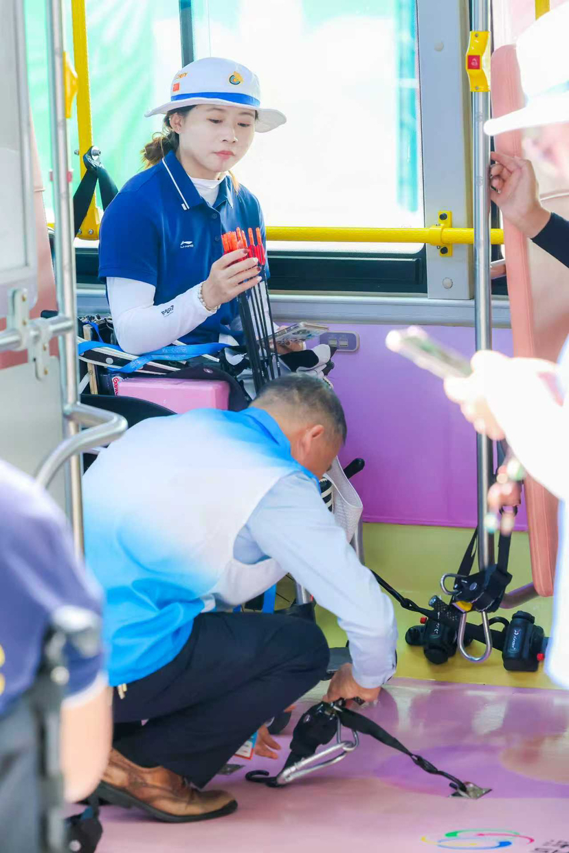 但沈玉婷更愿分享细节:“一位轮椅运动员上下车,司机和志愿者会形成‘三角保护位’;视障运动员乘车,司机会清晰报站并引导落座;车辆每日出车前必须进行设备安全检查,哪怕一个锁扣松了都不放过。”