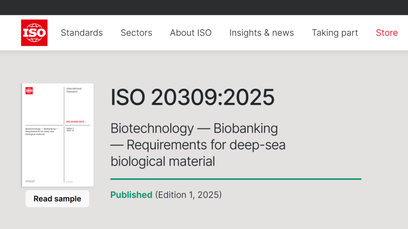 12月9日,由国际标准化组织生物技术委员会(ISO/TC 276)归口,华大集团联合中国科学院深海科学与工程研究所、上海交通大学、中国水产科学研究院黄海水产研究所、中国食品发酵工业研究院有限公司等机构共同研制的国际标准《ISO 20309:2025Biotechnology — Biobanking — Requirements for deep-sea biological material》(暂译名:生物技术 — 生物样本库 — 深海生物样本保藏要求)正式发布。