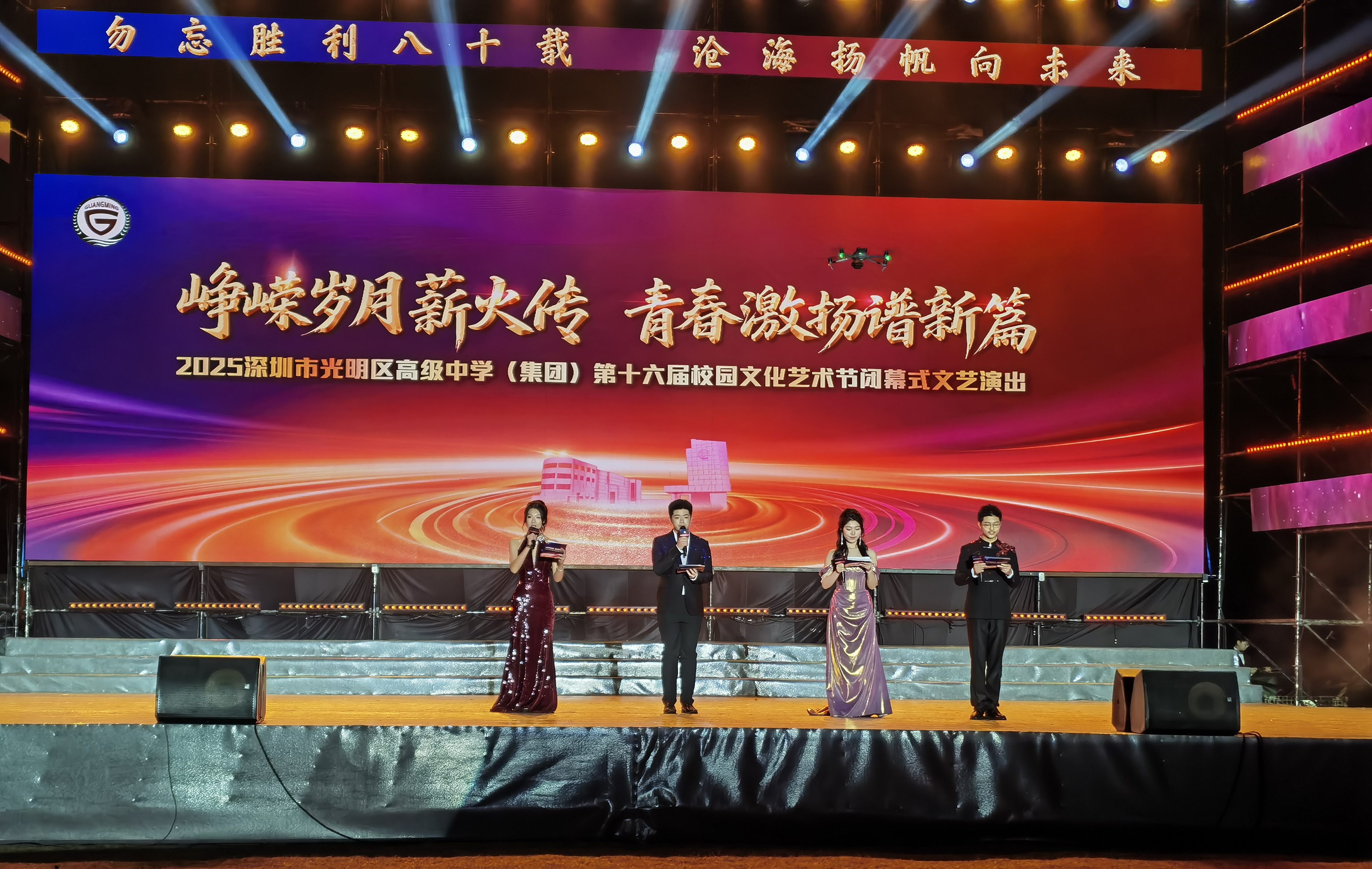 燈火璀璨,星河閃爍,青春激揚,未來可期。2025年12月10日,深圳市光明區高級中學(集團)第十六屆校園文化藝術節閉幕式文藝晚會在學校田徑場盛大舉行。近萬名線下觀眾到場見證,線上觀看人數超過12,000人次,累計點讚數高達77,000,熱度持續攀升。這場以“崢嶸歲月薪火傳·青春激揚譜新篇”為主題的藝術盛宴吸引了廣大師生、嘉賓、家長、藝術家及媒體朋友的參與,旨在通過豐富多樣的藝術形式,踐行“尊重個性,終身發展”的教育理念,展示美育的初心,彰顯家國情懷。