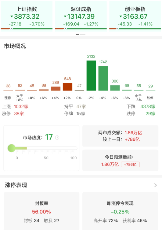 截至收盘,A股三大指数集体收跌,沪指跌0.7%,深证成指跌1.27%,创业板指跌1.41%;北证50指数午后异动拉升,收盘大涨近4%。