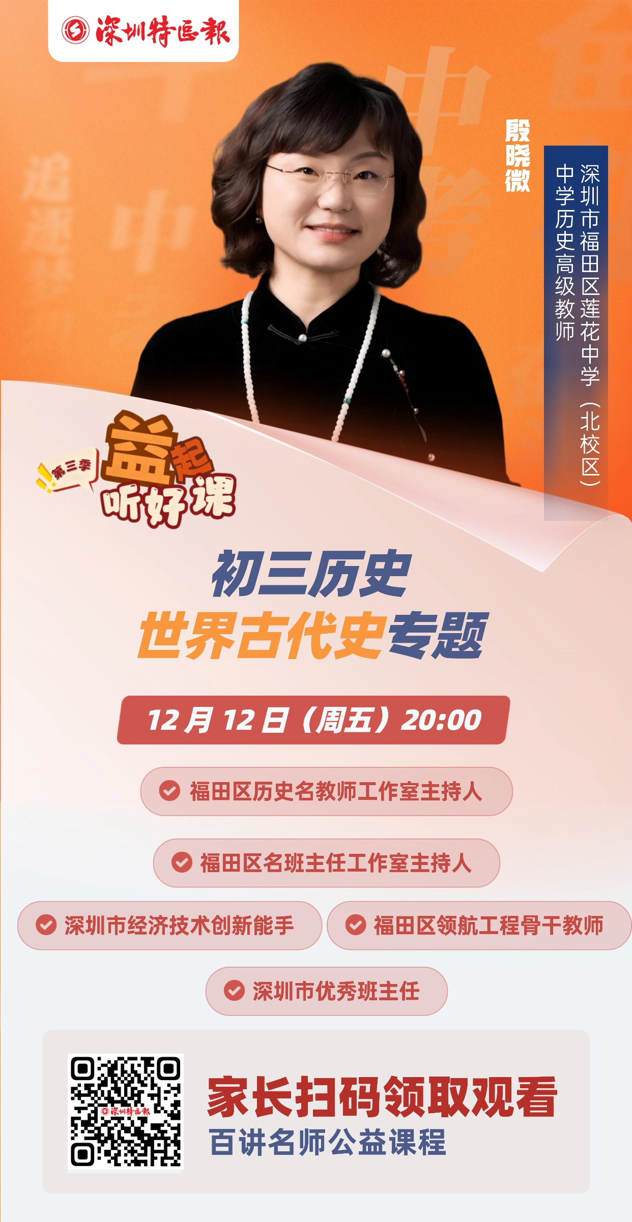 由深圳特区报主办,邀请深圳具有丰富学科教学经验的初中老师主讲的“第三季▪深圳名师公益课堂”继续开讲。