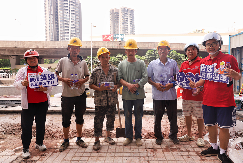 志愿者们前往城市公园、交通枢纽等场所,为环卫工人、交警、建筑工人等坚守岗位的一线工作者送上饮用水,传递城市关怀。