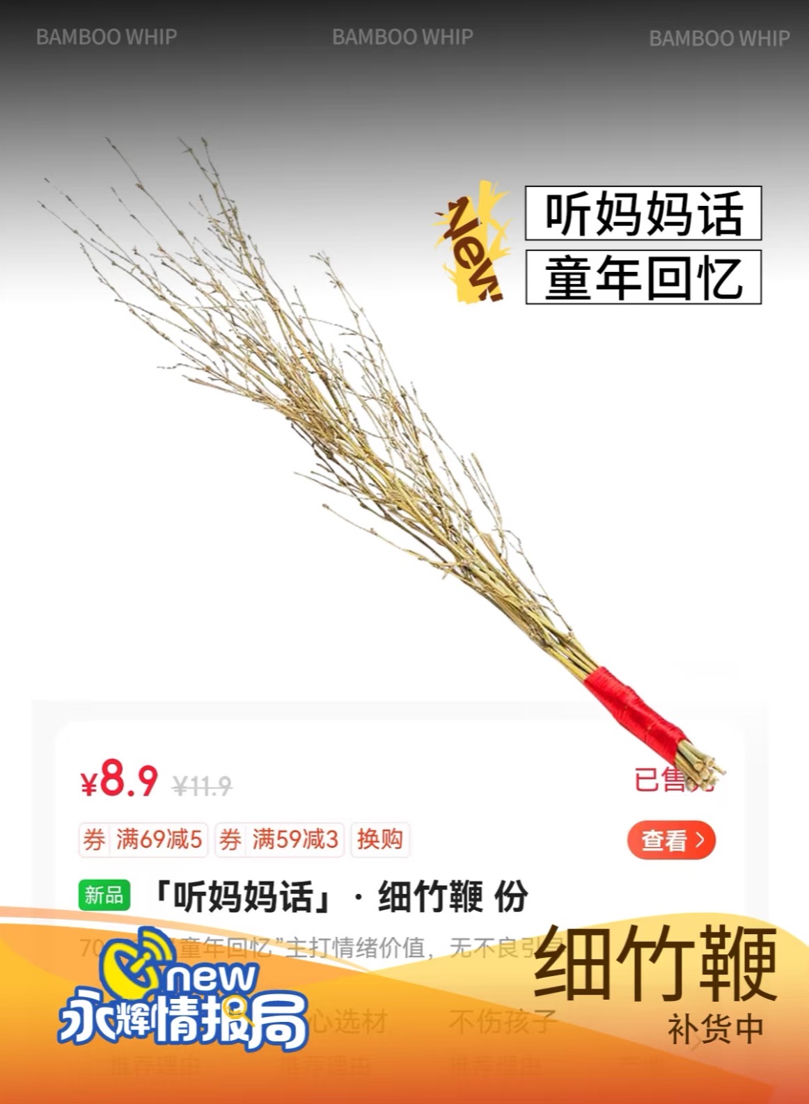 近日,永辉超市将细竹鞭包装成“70—90代童年回忆”进行售卖,引发舆论争议。