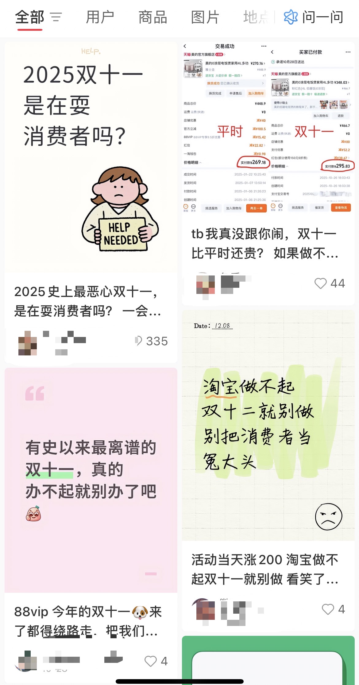 记者梳理发现,在今年的“双十一”“双十二”期间,“没便宜多少”“促销力度不如从前”“玩法太复杂”成为许多消费者的感受。相关的话题“双十一不再便宜”“双十二好冷清”成为社交平台上热议的话题。“双十一”大促期间平台或商家释放的“限时补贴”,因时间差还导致了消费者“买贵”,进而引发“退货潮”。