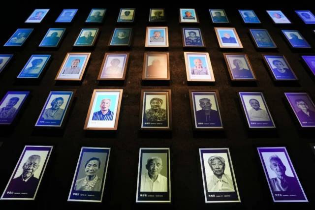 12月5日拍摄的侵华日军南京大屠杀遇难同胞纪念馆内的幸存者照片墙。新华社记者 李博 摄