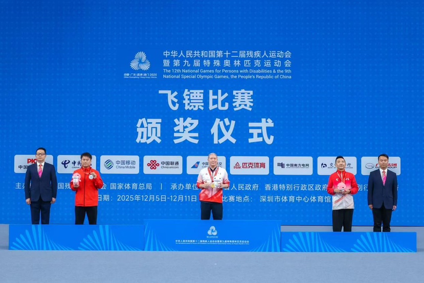 12月8日至10日,全国第十二届残疾人运动会暨第九届特殊奥林匹克运动会(以下简称残特奥会)飞镖(大众)项目在深圳福田赛区圆满举办。作为本届残特奥会11个大众项目之一,飞镖(大众)项目以“平等、融合、共享”为理念,设置肢体站姿、肢体坐姿、智力残疾和听力残疾四大组别,全国有26支队伍共263名残疾人运动员同台竞技。60岁的深圳运动员熊文胜在比赛收官日的肢体残疾站姿组男子单人赛中强势夺冠,为广东队斩获关键一金,也为自己的运动员生涯“最后一站”画上圆满句号。
