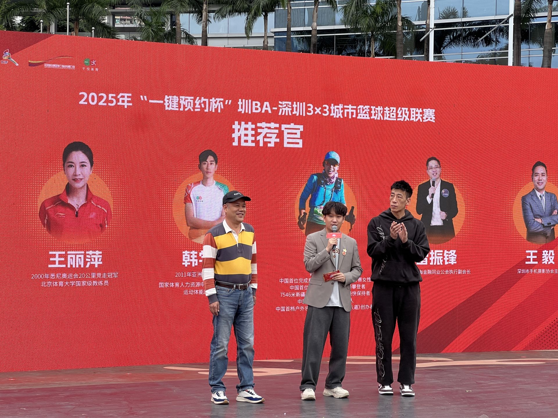 值得关注的是,本次赛事特别邀请了6位推荐官为赛事助力打call。其中包括CBA退役名将王晶、亚锦赛赛艇冠军韩学良、深圳市手机摄影协会主席王毅、篮球公益践行者雷振锋、全国越野跑冠军珊瑚、奥运会冠军王丽萍。6位推荐官来自体育、公益、艺术等多个领域,他们将凭借自身影响力,多角度、全方位推广赛事,传递全民运动理念,尤其在推动残健共融、公益传播等方面发挥积极作用。王毅表示,将继续通过“圳BA光影计划”,用镜头定格赛事中的热血瞬间,让篮球魅力通过影像传遍全网。