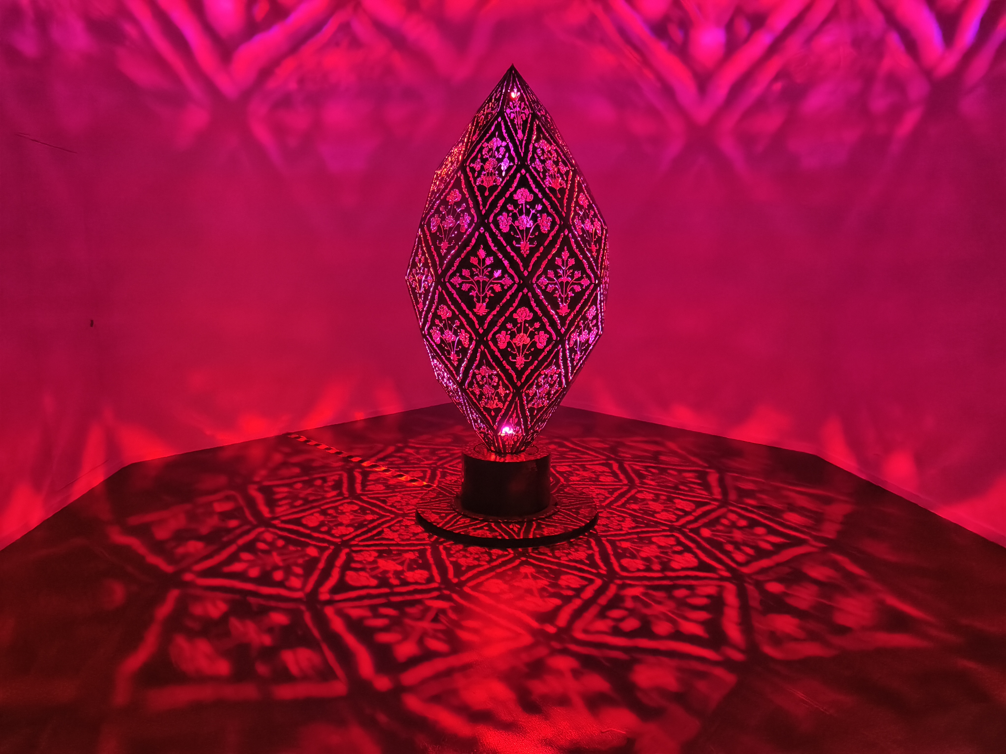 我们以“莫卧儿花园”为灵感原点规划了第四单元的展品和展项 。基于此概念,团队打造了两个光影艺术装置: