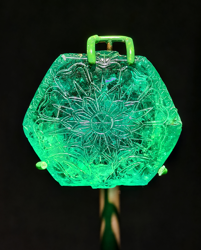 策展人陈嘉雯: 昆丹工艺(Kundan)是印度特有的珠宝镶嵌技艺,工匠将极柔软的24K纯金箔填入宝石与底座间的缝隙并压实,从而牢牢固定宝石 。这种工艺体现了莫卧儿人的自然审美风尚:工匠们往往仅去除存在严重裂纹或包裹体的部分,尽可能保留原石的最大体积,这与欧洲追求标准尺寸下几何切割宝石的理念截然不同 。