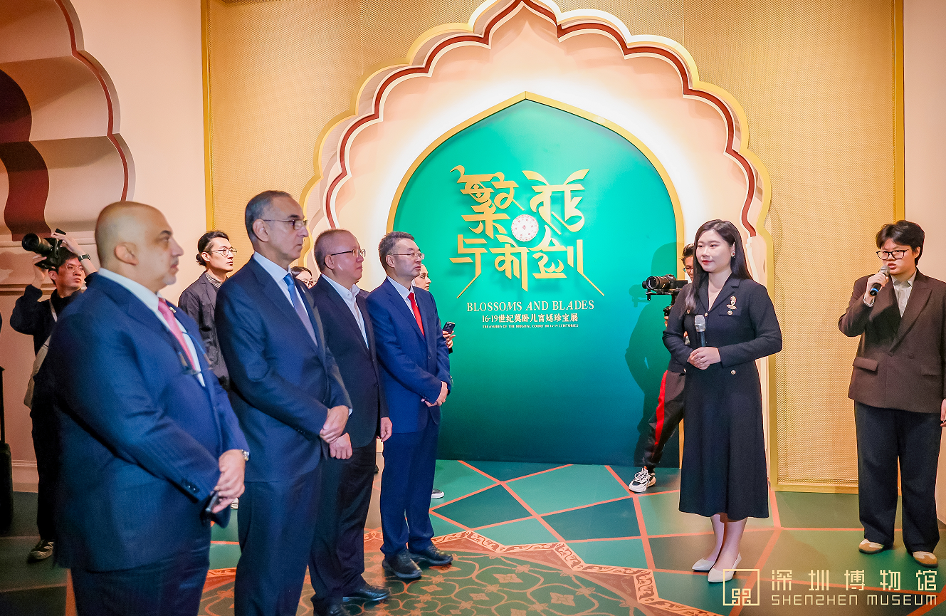 在2025年与2026年交接之际,一场跨越时空的文明对话“繁花与利剑——16-19世纪莫卧儿宫廷珍宝展”在深圳博物馆盛大展开。尽管“繁花与利剑”特展是一场收费展,但自开幕以来热度持续攀升,周末展厅外更是出现排长队的盛况,场面十分火爆。作为中科建交55周年的重要文化献礼,本次展览由深圳博物馆携手中国文物交流中心与科威特伊斯兰珍宝馆共同推出,近200件曾游历大英博物馆、卢浮宫等世界顶级殿堂的珍宝首次在中国内地惊艳亮相从象征权力的利剑到寓意繁荣的繁花,从极致奢华的“昆丹”工艺到流光溢彩的莫卧儿美学,这场展览究竟有何魅力能引爆鹏城观展热潮?深圳晚报专访了本次展览的策展人陈嘉雯,深度揭秘这场莫卧儿帝国宫廷艺术盛宴背后的策展逻辑、展陈巧思与跨文化对话。