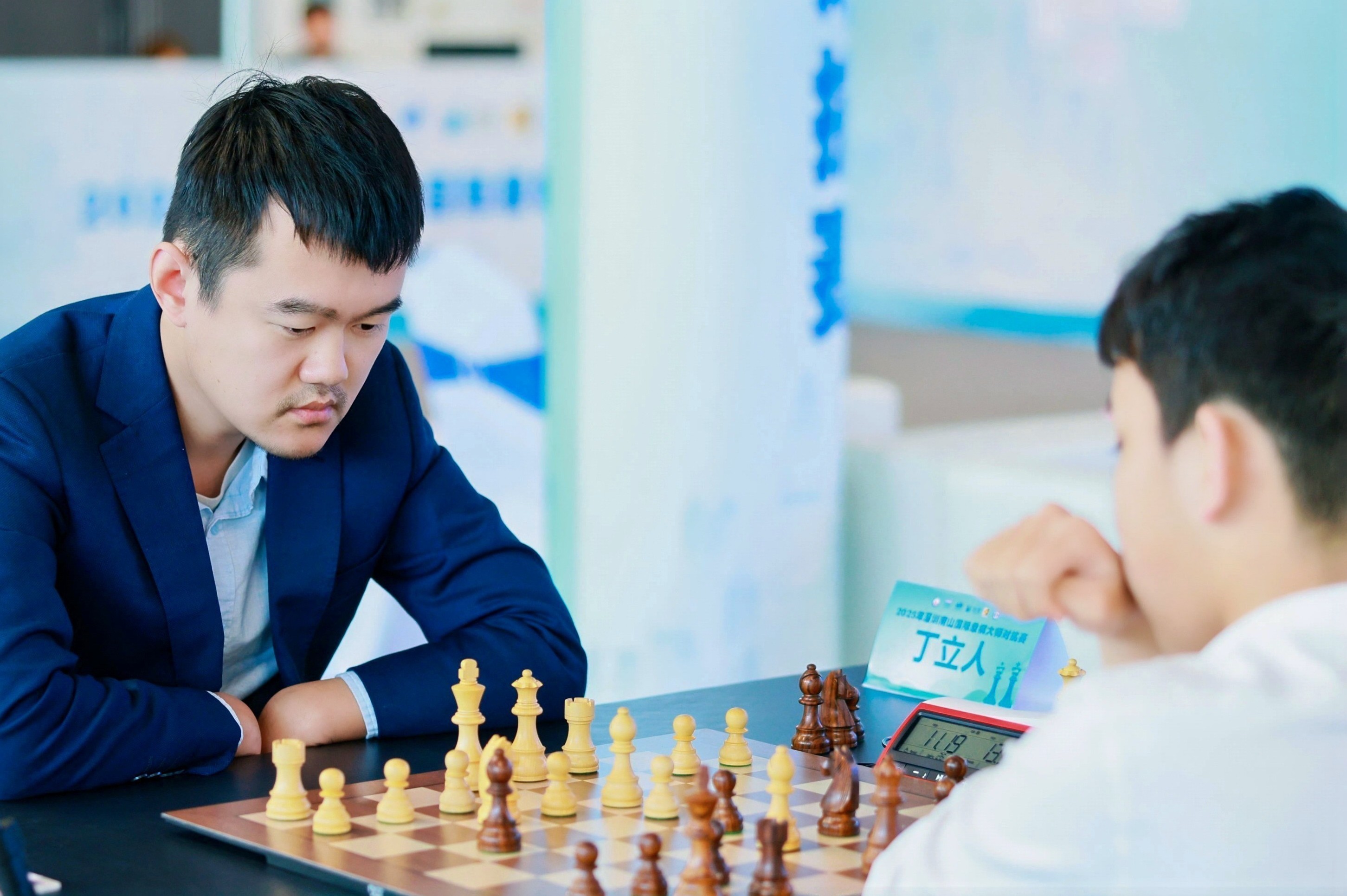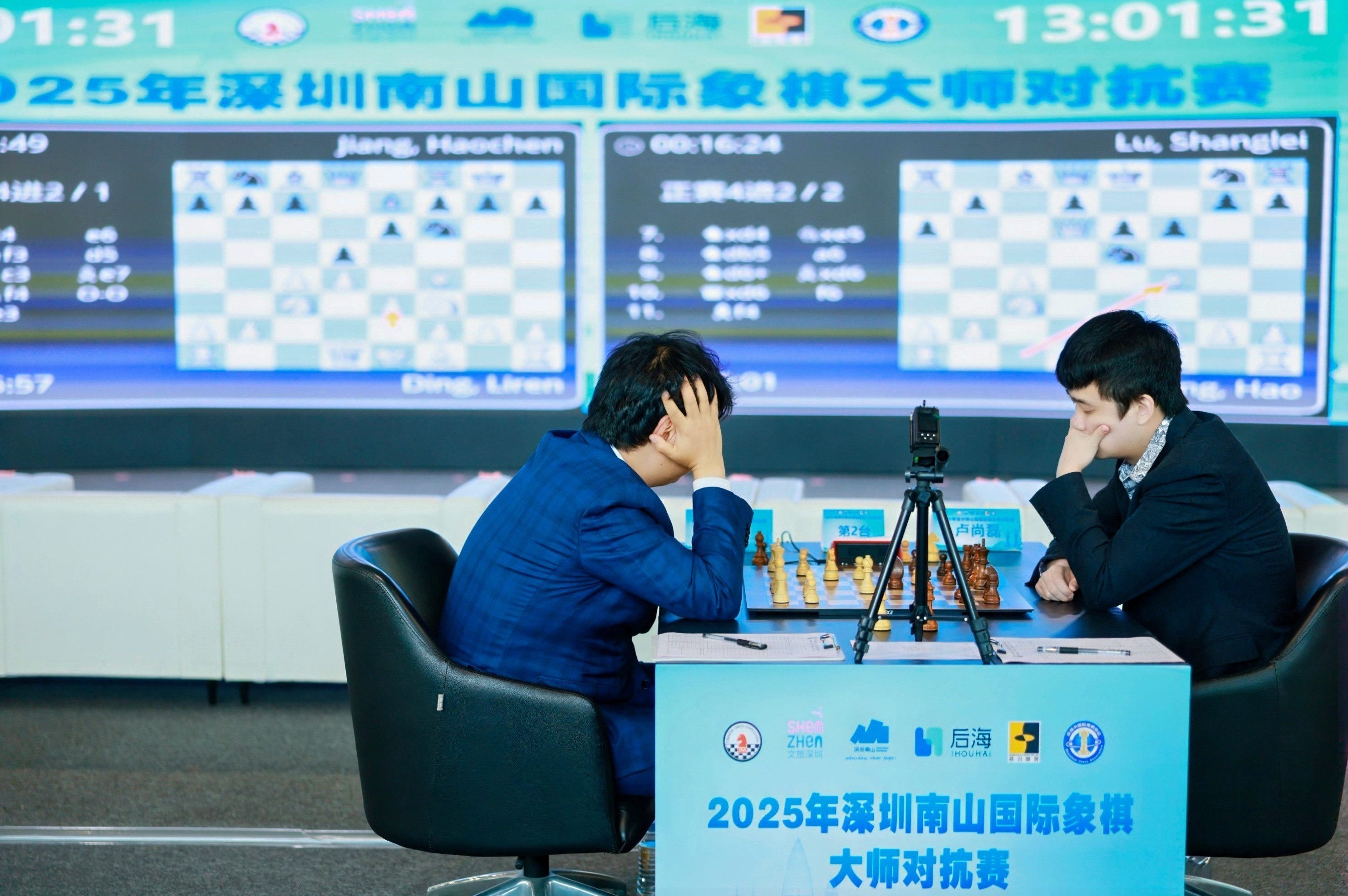 12月14日,在南山人才公园求贤阁举办的2025年深圳南山国际象棋大师对抗赛进行了半决赛的争夺。赛会等级分最高的两位种子棋手丁立人和王皓,分别战胜姜昊辰和卢尚磊,会师冠亚军决赛。