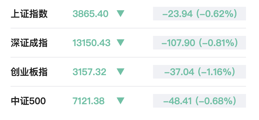 12月15日,A股市场迎来调整,三大股指集体低开。截至开盘,沪指跌0.62%报3865.4点,深成指跌0.81%报13150.43点,创业板指跌1.16%报3157.32点,科创50指数跌1.15%报1333.36点。