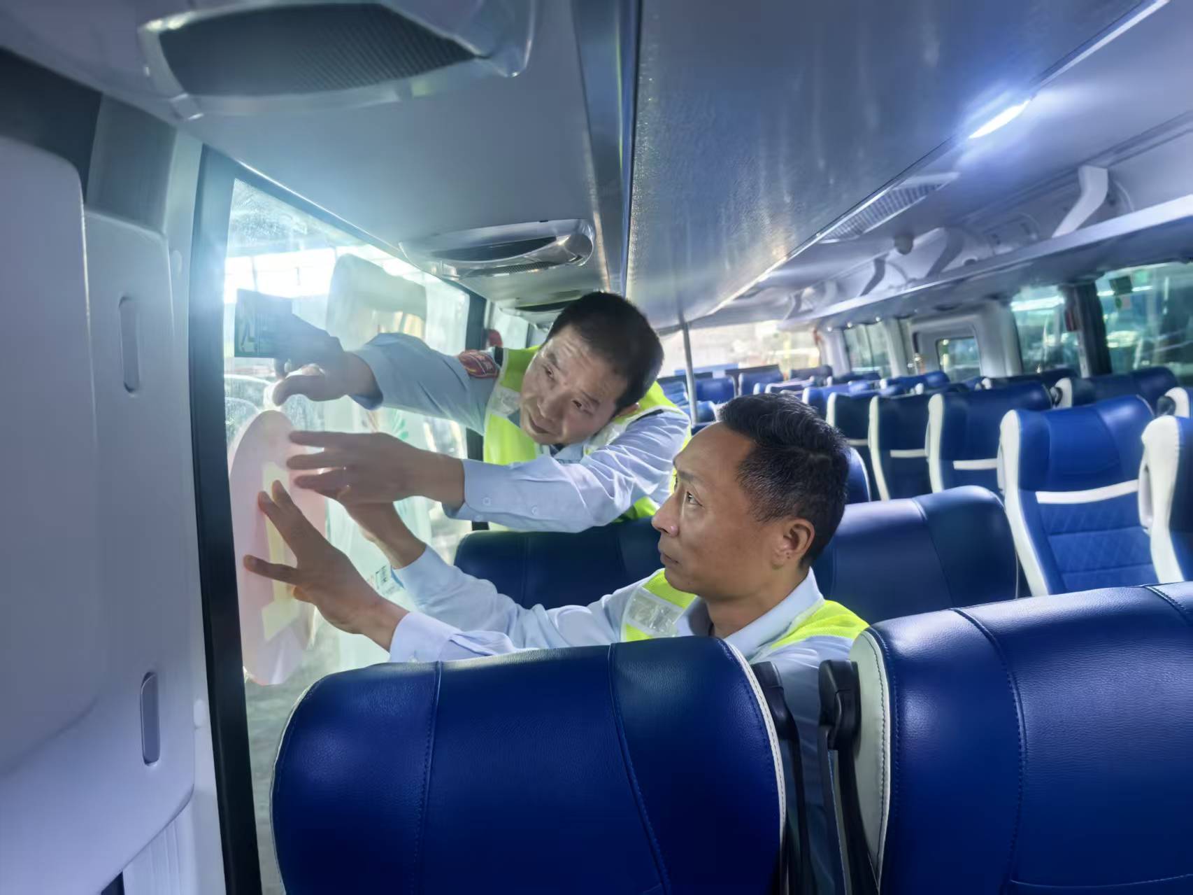 保障全程贯穿“安全第一、服务至上”原则,对30台车辆开展全面安全隐患排查,重点核查制动、转向、灯光等关键系统,同步清洁车厢与检查停车场;针对双会保障的特殊性,统一张贴专用标识与安全提示,为残疾人嘉宾优化无障碍指引。“一长三员”各司其职、协同配合,精准对接嘉宾出行需求,提供贴心帮扶。